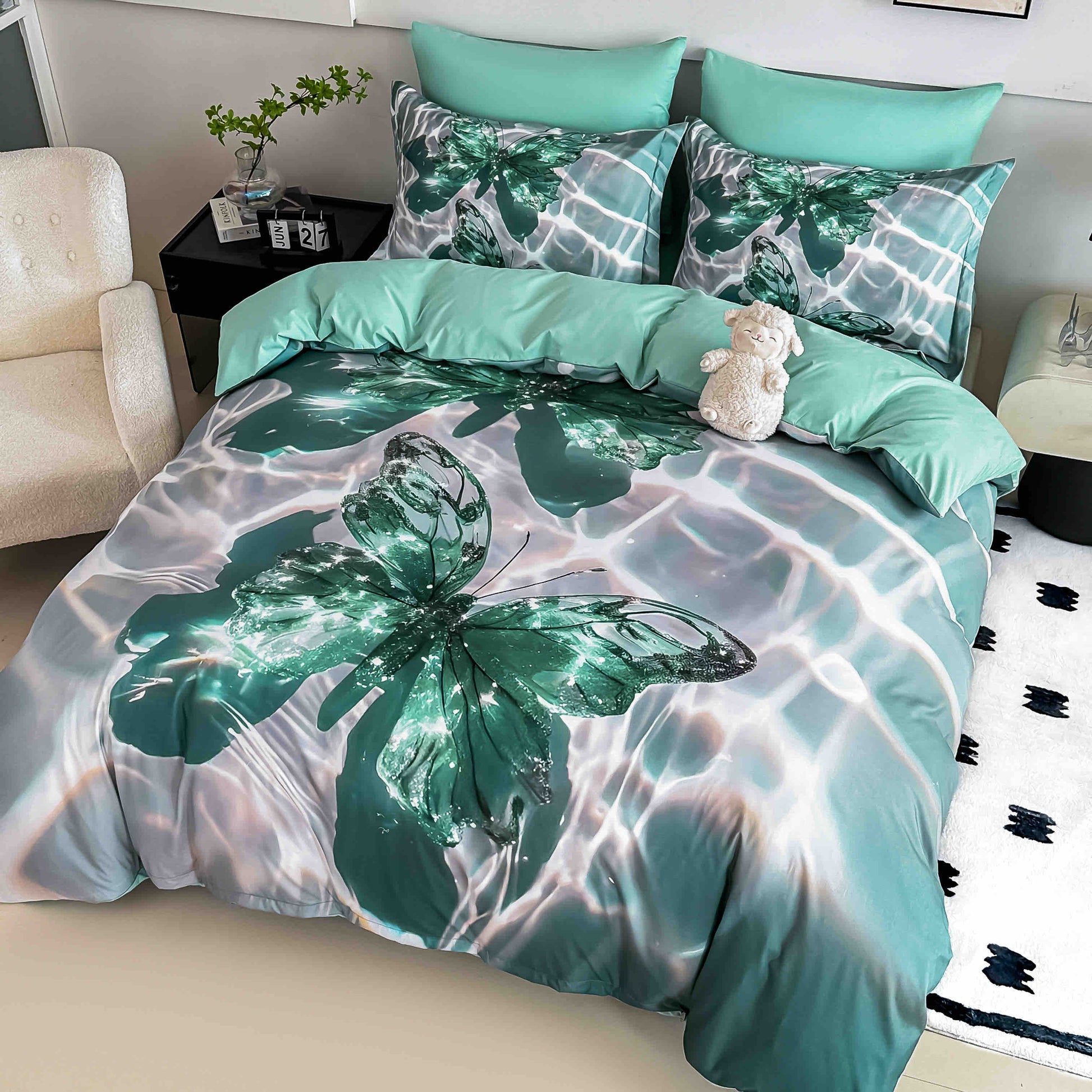 Lenjerie 5D Finet, 4 Piese, 1 Persoana, cu Elastic, Imprimeu Digital Identic cu Poza-C9789