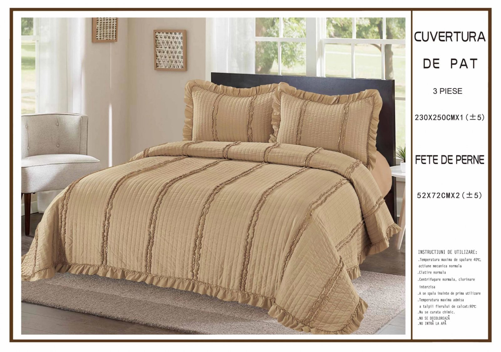 Cuvertura De Pat 3 Piese, din Bumbac Satinat, Cappuccino Uni-A6227