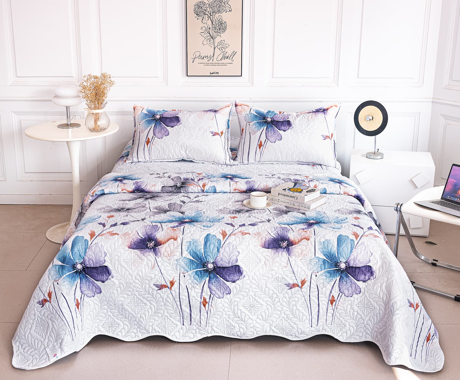 Cuvertura De Pat 3 Piese, din Bumbac Satinat, Floricele-A9846