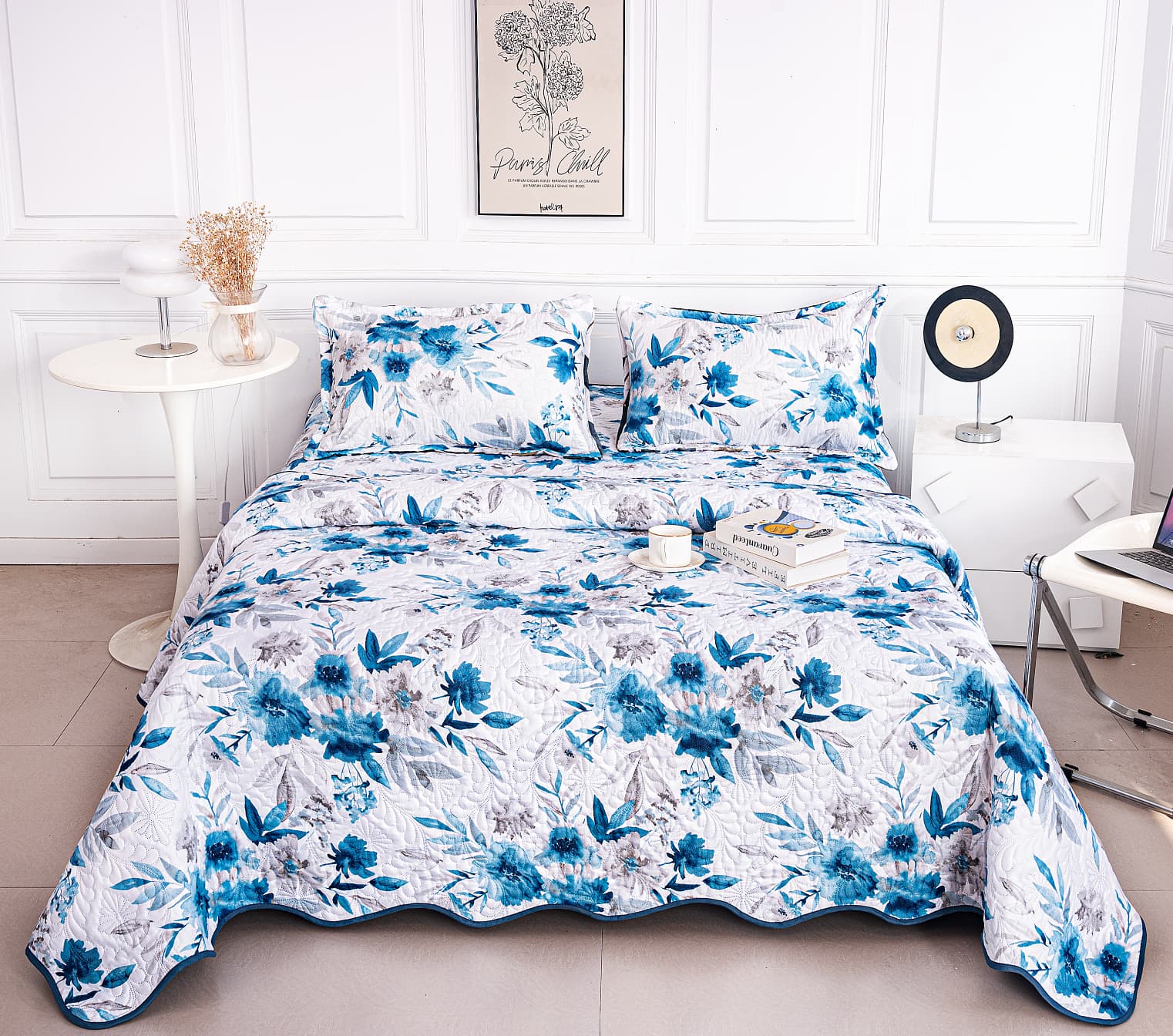 Cuvertura De Pat 3 Piese, din Bumbac Satinat, Floricele-A9848