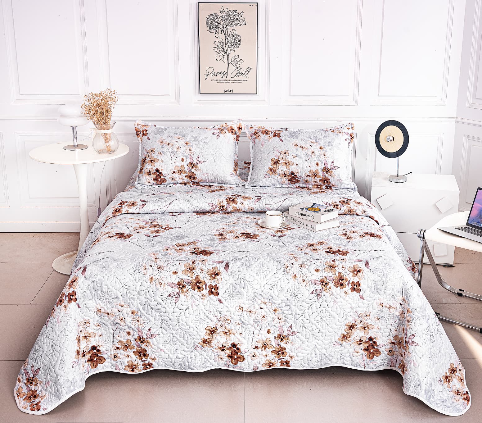 Cuvertura De Pat 3 Piese, din Bumbac Satinat, Floricele-A9860