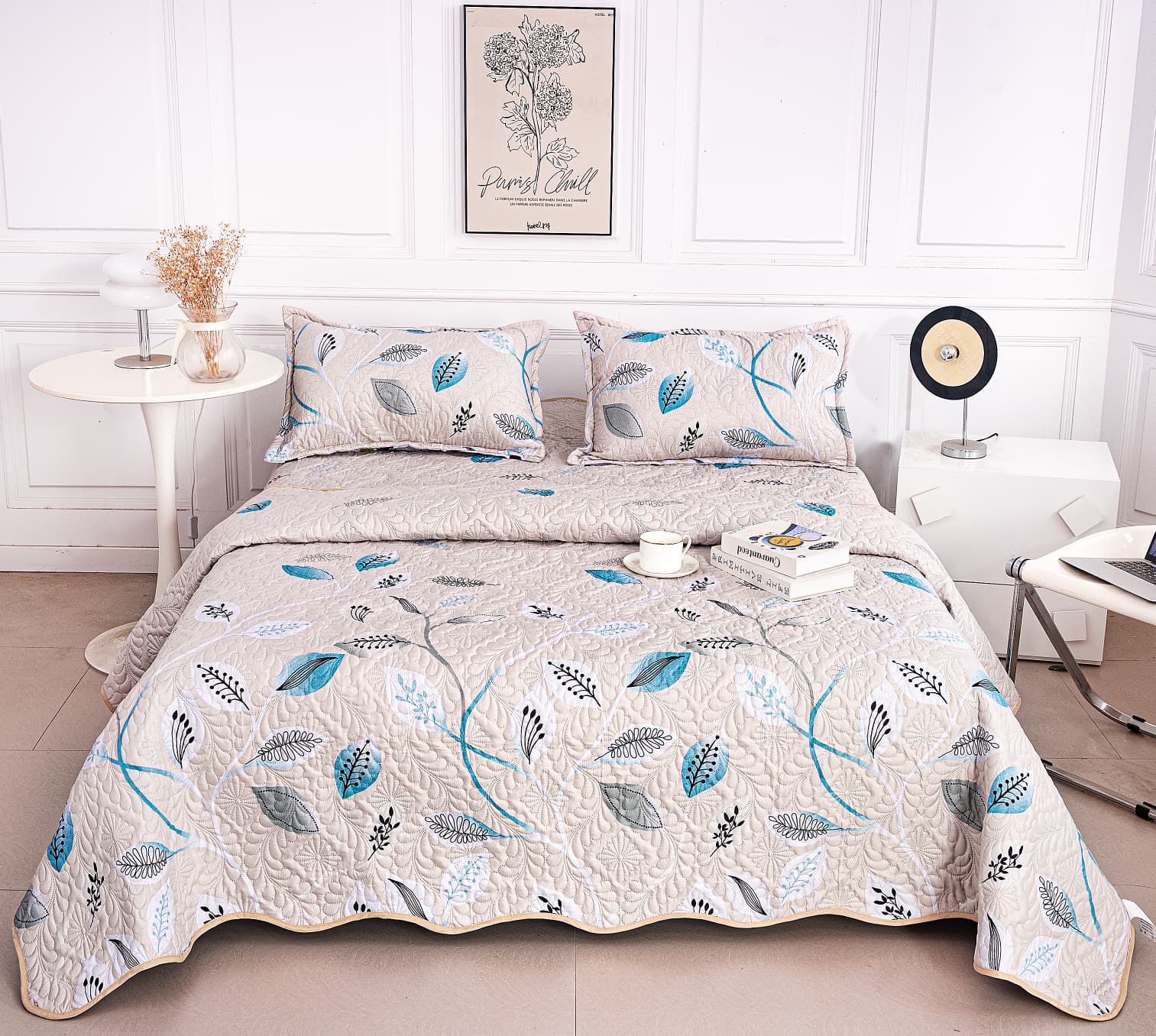 Cuvertura De Pat 3 Piese, din Bumbac Satinat, Frunze-A9833