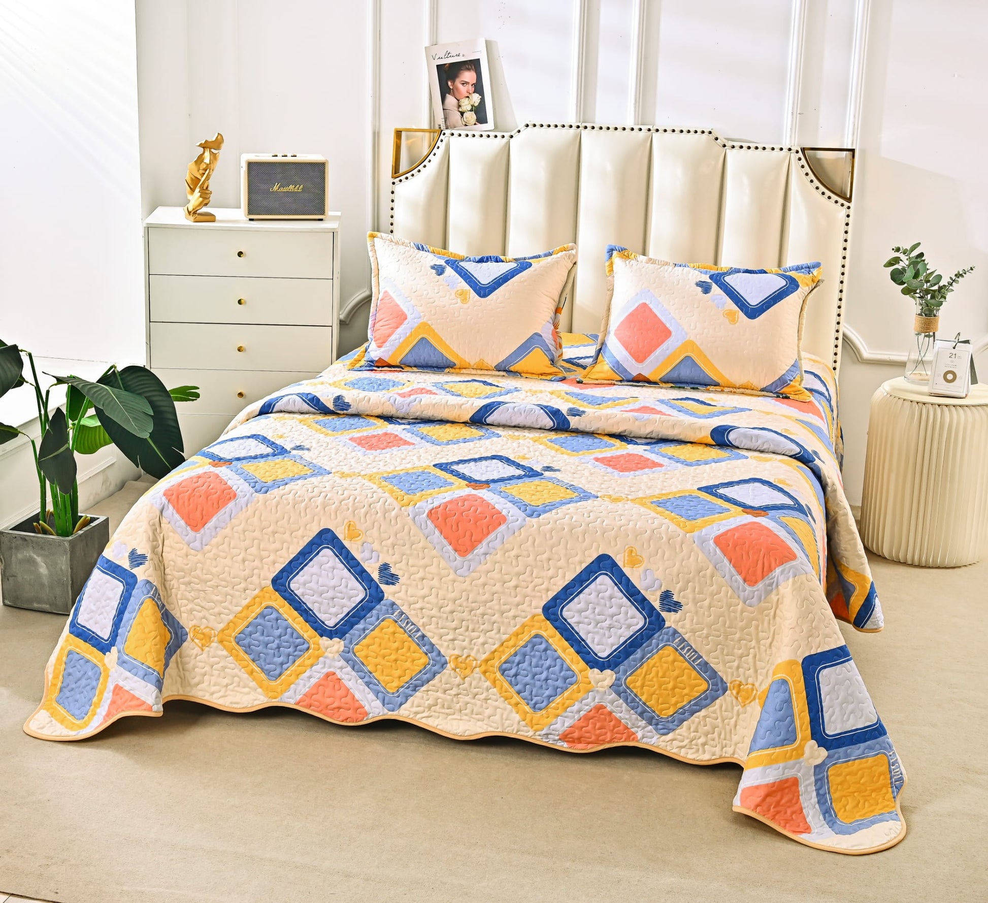 Cuvertura De Pat 3 Piese, din Bumbac Satinat, Geometrie-A9853
