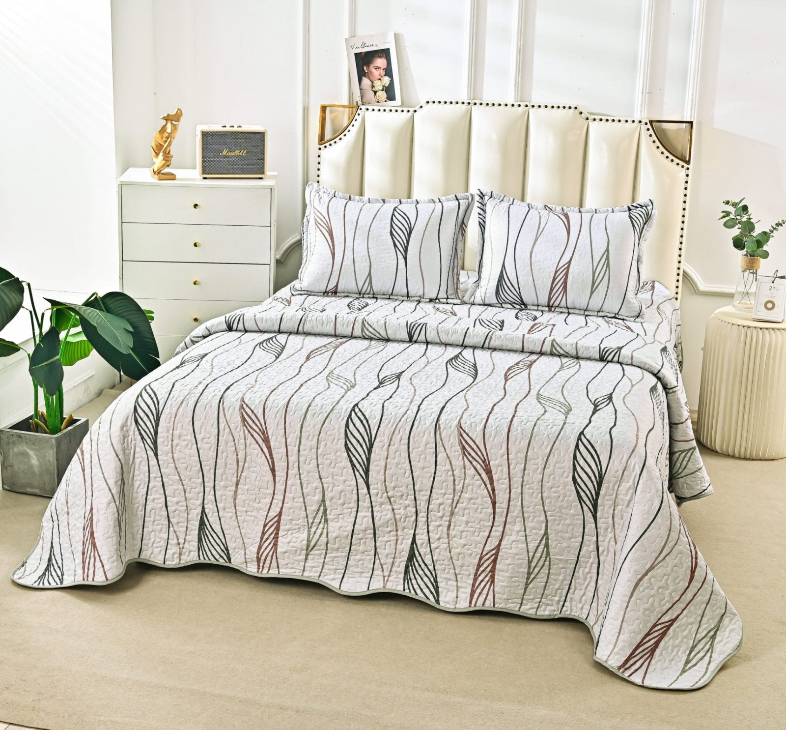 Cuvertura De Pat 3 Piese, din Bumbac Satinat, Imprimeu Abstract-A5916