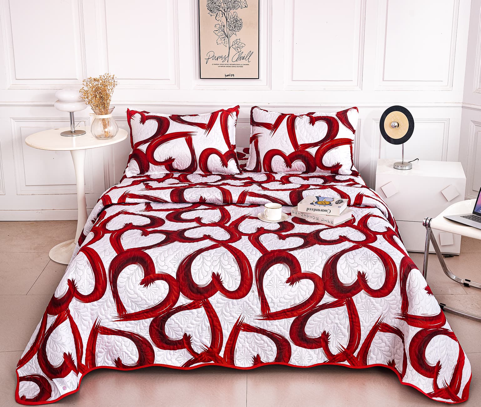 Cuvertura De Pat 3 Piese, din Bumbac Satinat, Inimioare-A9829