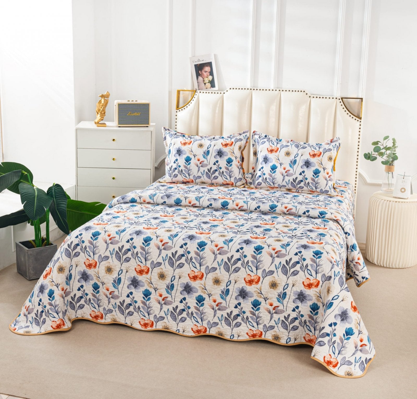 Cuvertura De Pat 3 Piese, din Bumbac Satinat, Model Floral-A5926