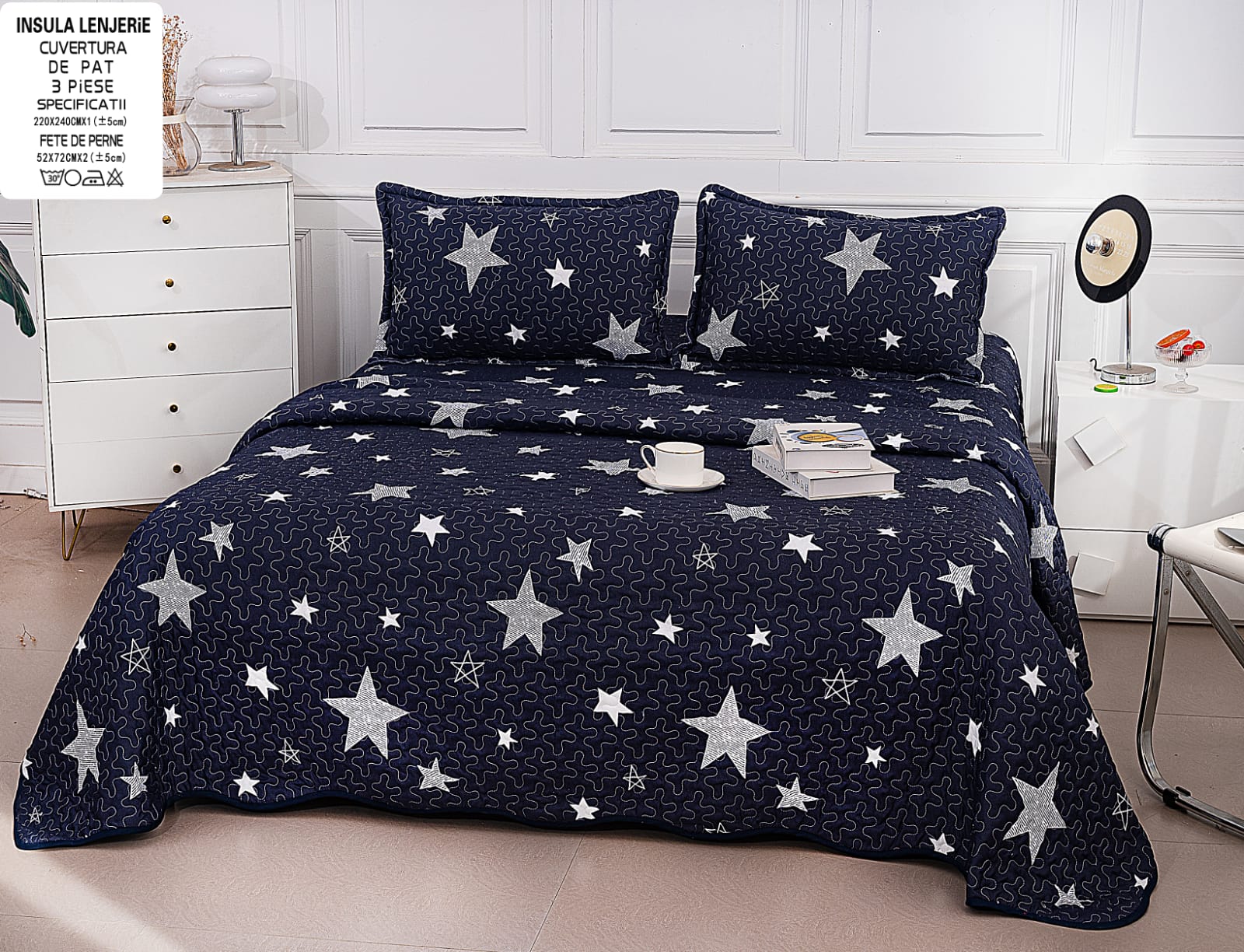 Cuvertura De Pat 3 Piese, din Bumbac Satinat, Stelute-A9866