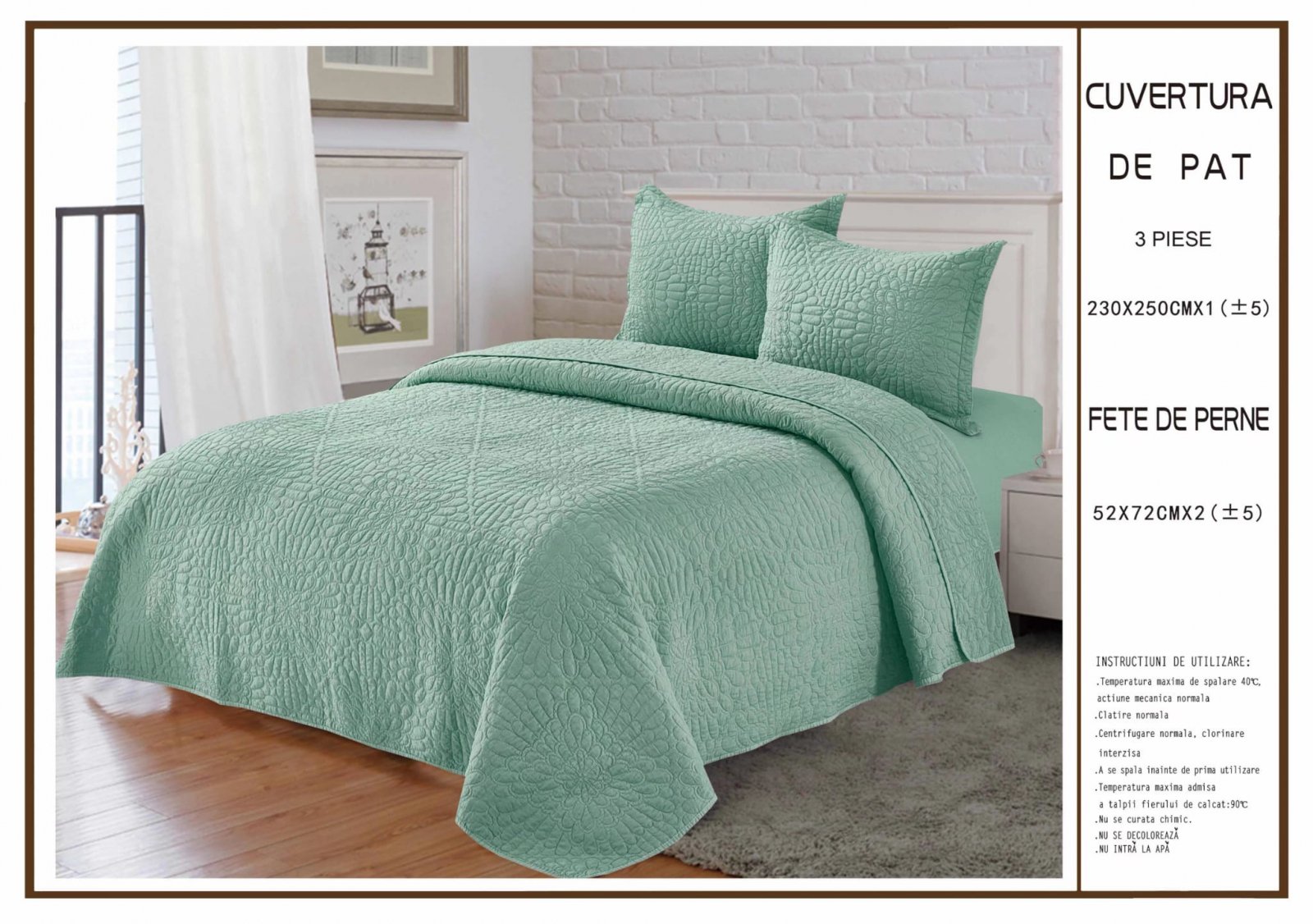 Cuvertura De Pat Matlasata, din Bumbac Satinat, cu 3 Piese, Verde-A8150