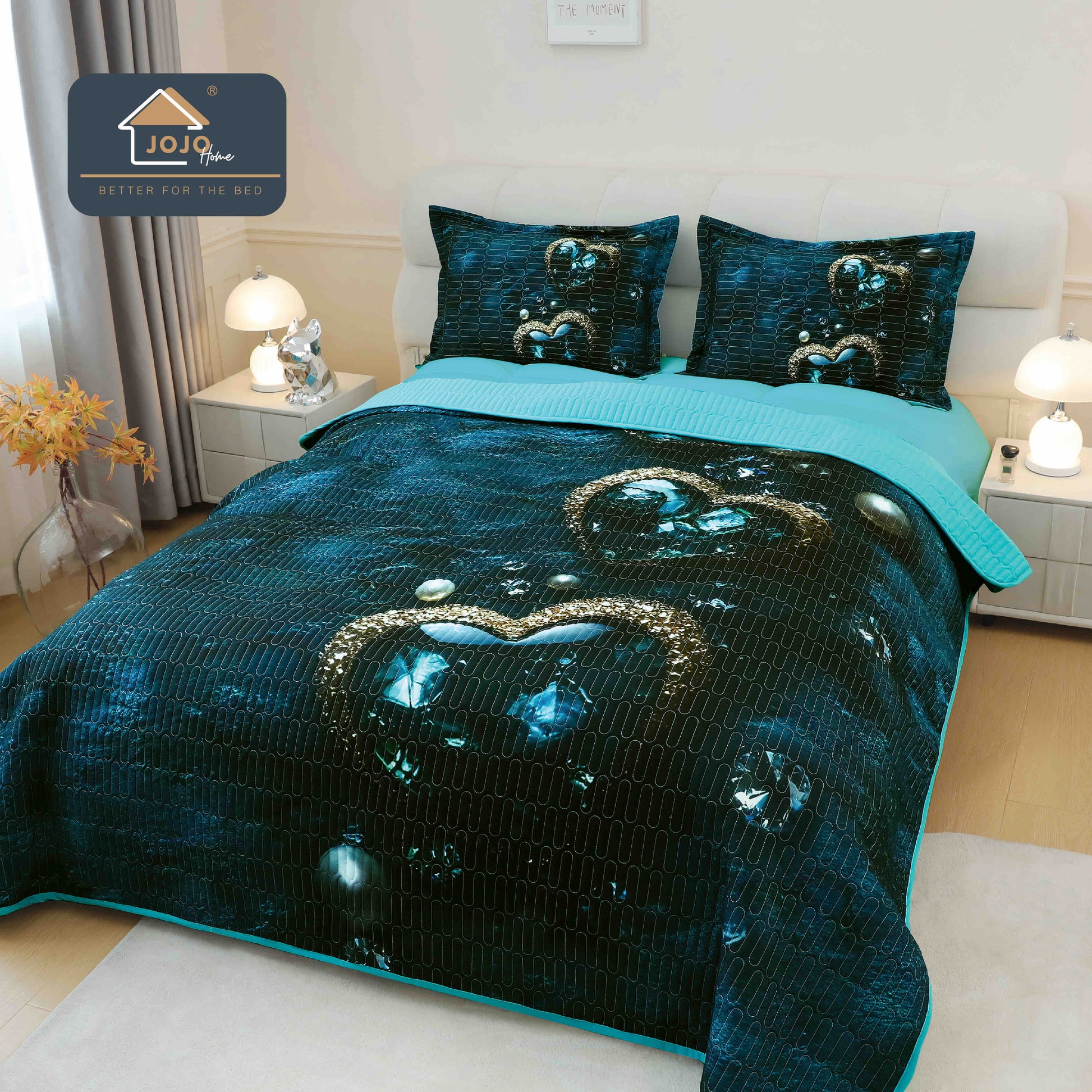 Cuvertura Matlasata+2 Fete de Perna, din Bumbac Finetat, Imprimeu 5D, Diamante-C10045