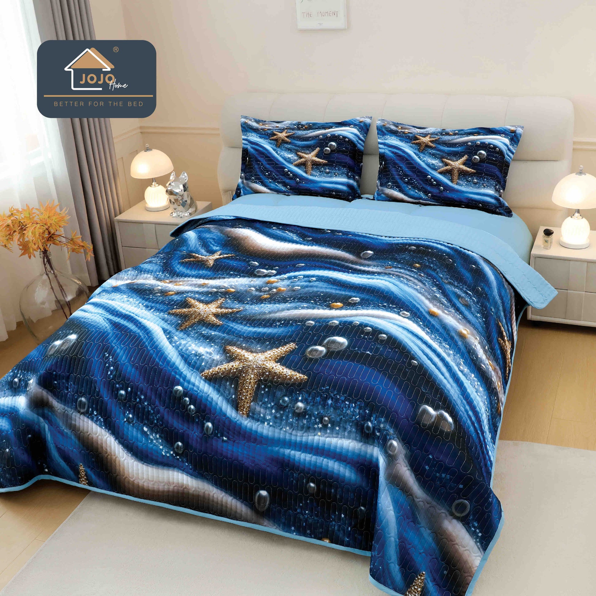 Cuvertura Matlasata+2 Fete de Perna, din Bumbac Finetat, Imprimeu 5D, Ocean-C9693