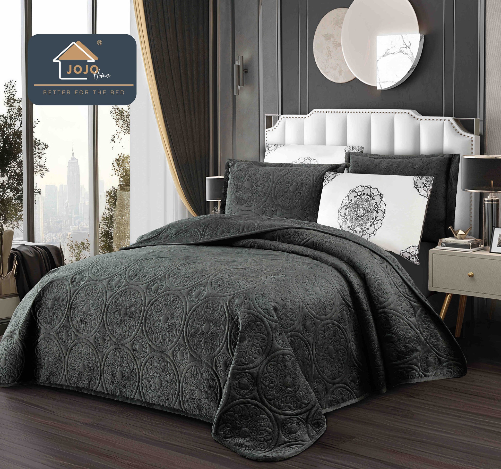 Cuvertura Pat Dublu 5 Piese, Catifea Luxury Matlasata, Gri Inchis-C10091