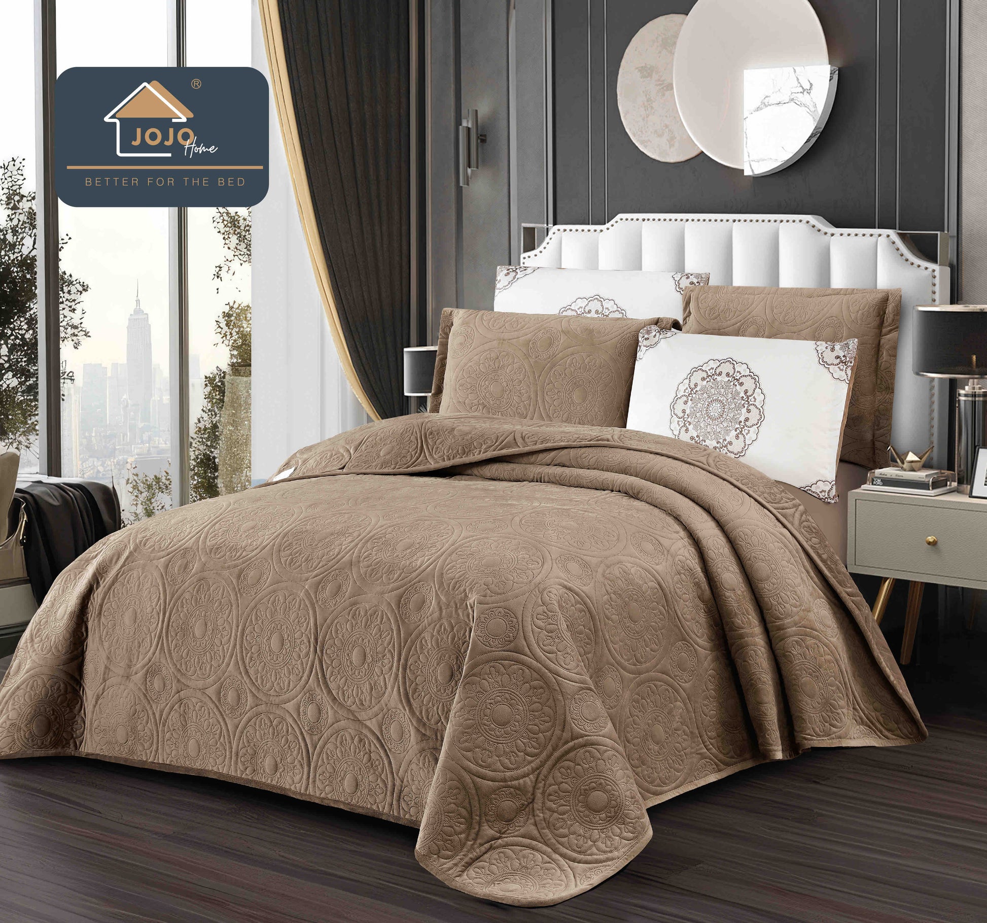Cuvertura Pat Dublu 5 Piese, Catifea Luxury Matlasata, Maroniu-C10094