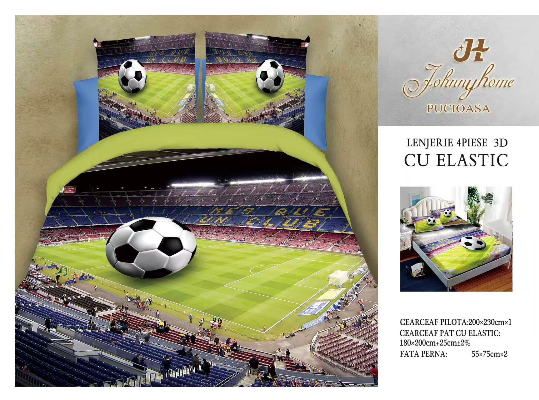 Lenjerie 3D cu Elastic din Bumbac Satinat Superior cu 4 Piese, Fotbal-H8811
