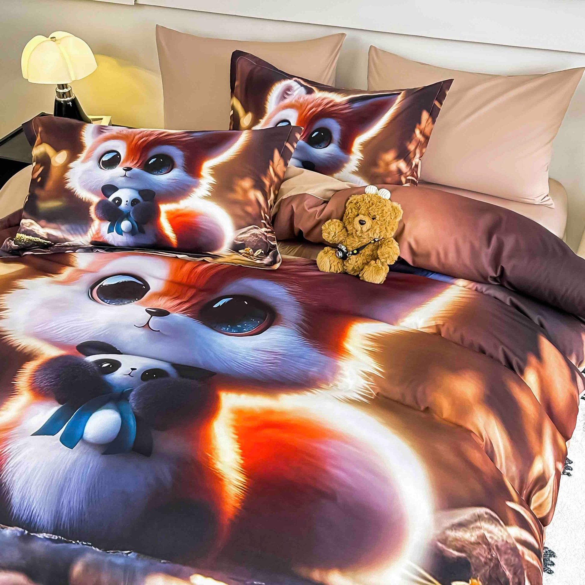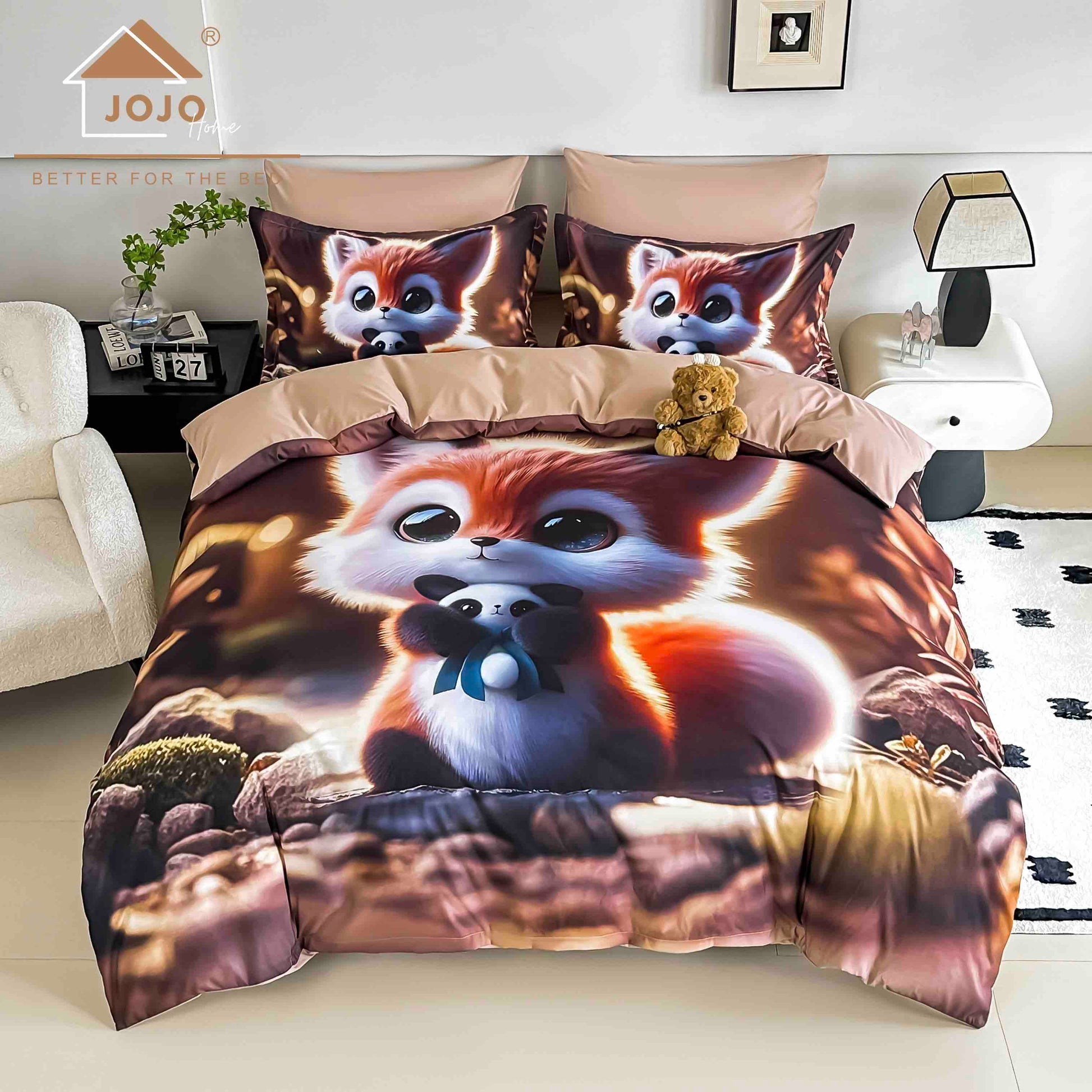 Lenjerie 5D Finet, 4 Piese, 1 Persoana, cu Elastic, Imprimeu Digital Identic cu Poza-C9783