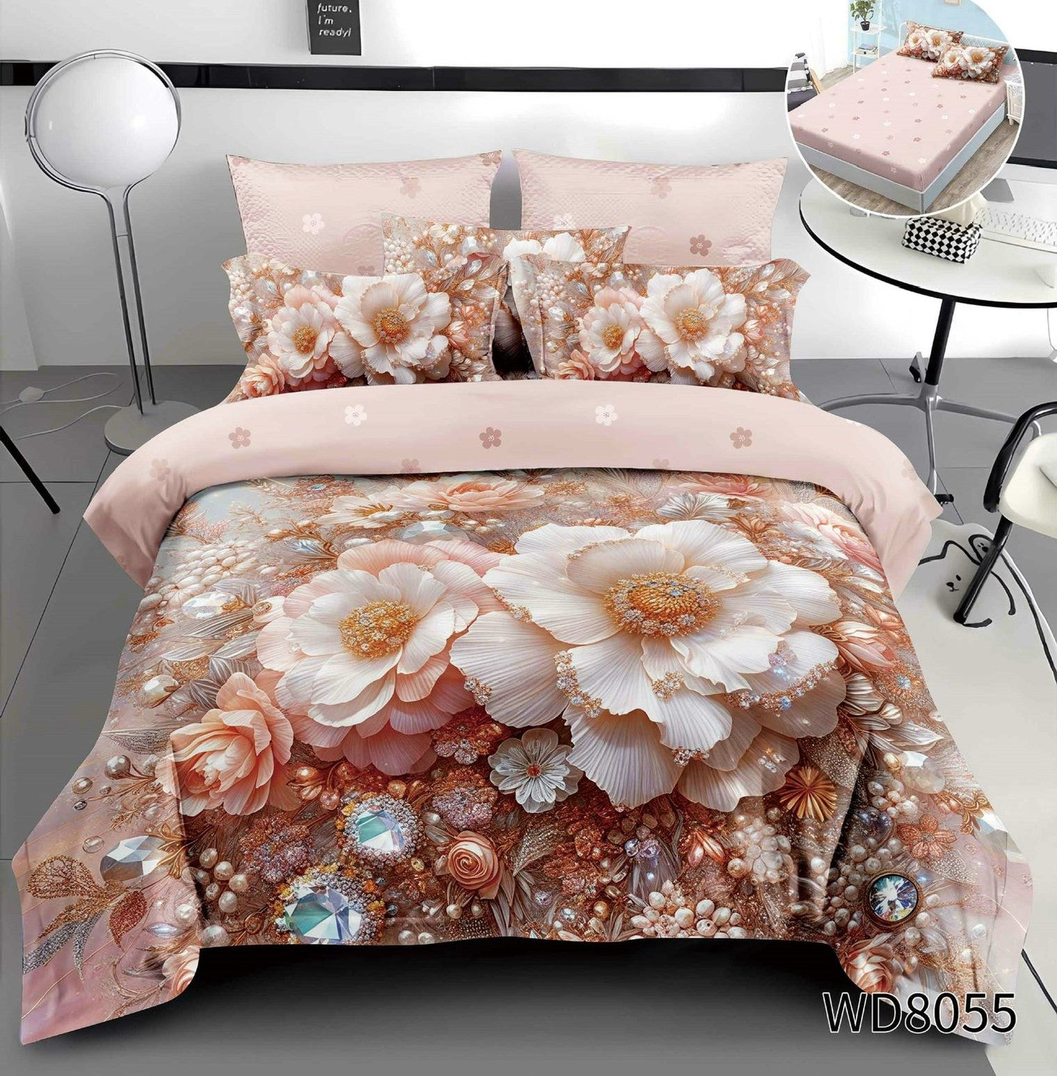 Lenjerie 5D Finet 4 Piese, cu Elastic, Imprimeu Identic cu Poza, Floricele-P10211