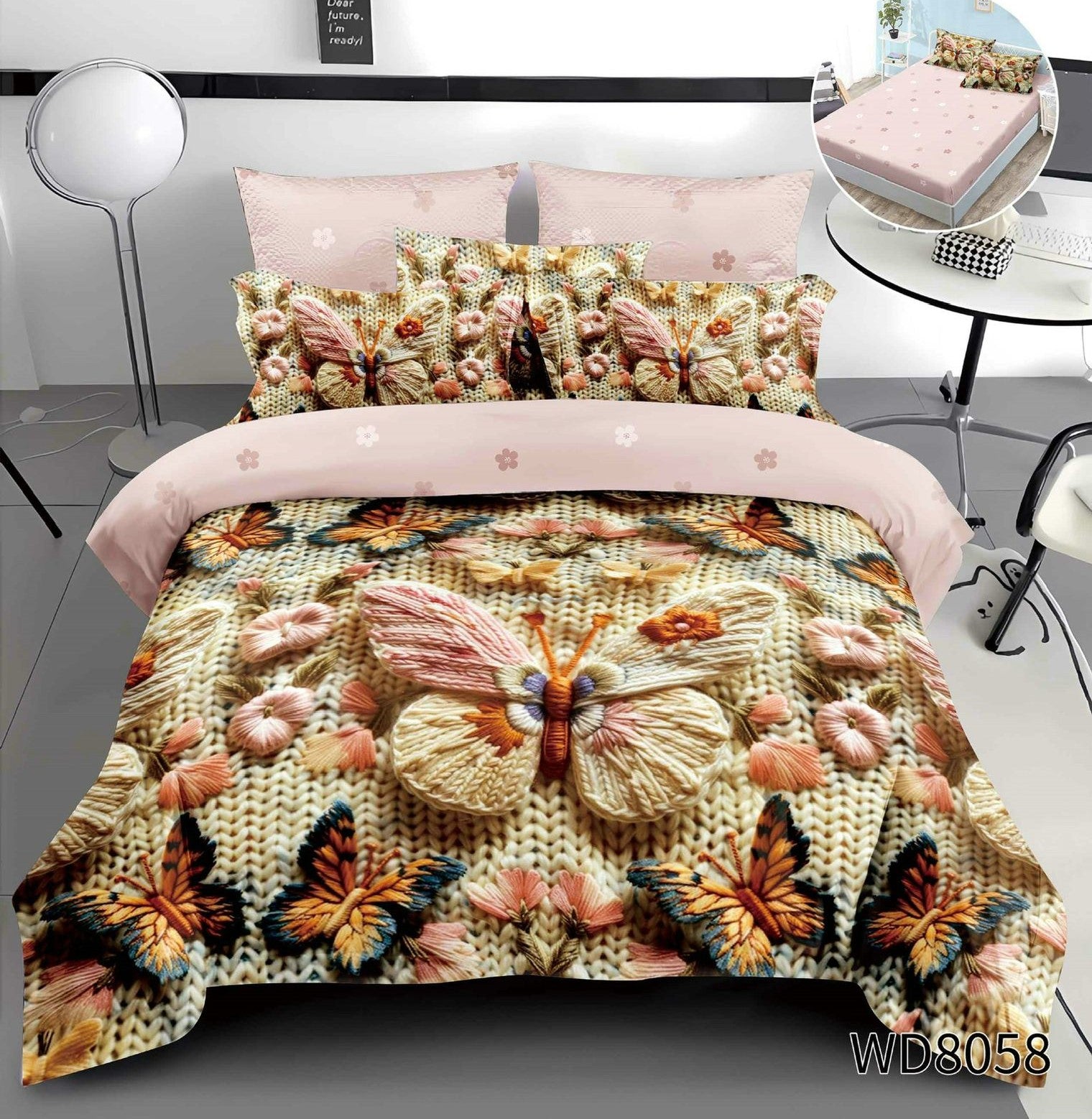 Lenjerie 5D Finet 4 Piese, cu Elastic, Imprimeu Identic cu Poza, Fluturasi-P10210