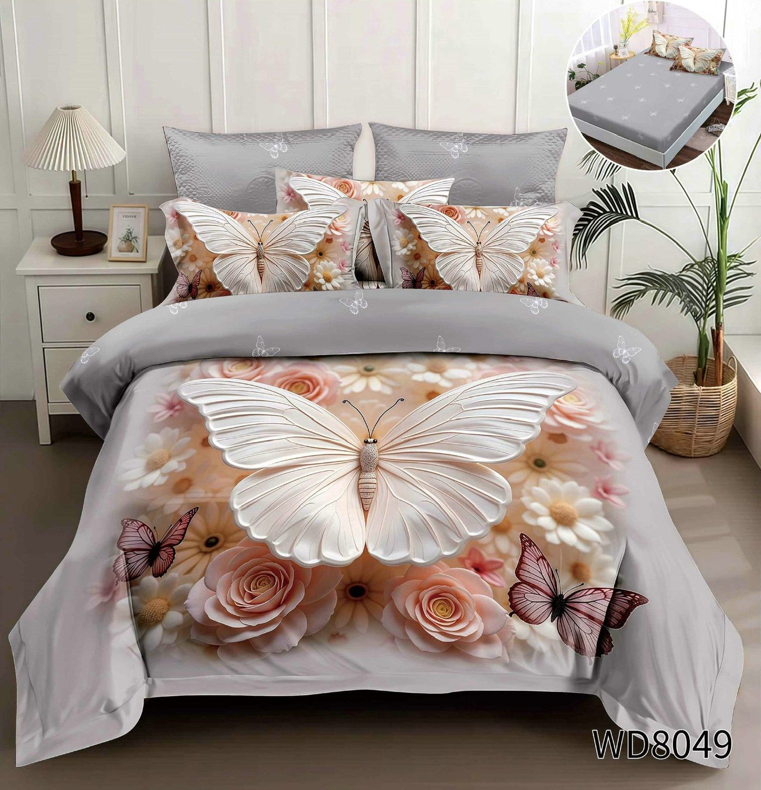 Lenjerie 5D Finet 4 Piese, cu Elastic, Imprimeu Identic cu Poza, Fluturi/Flori-P10213