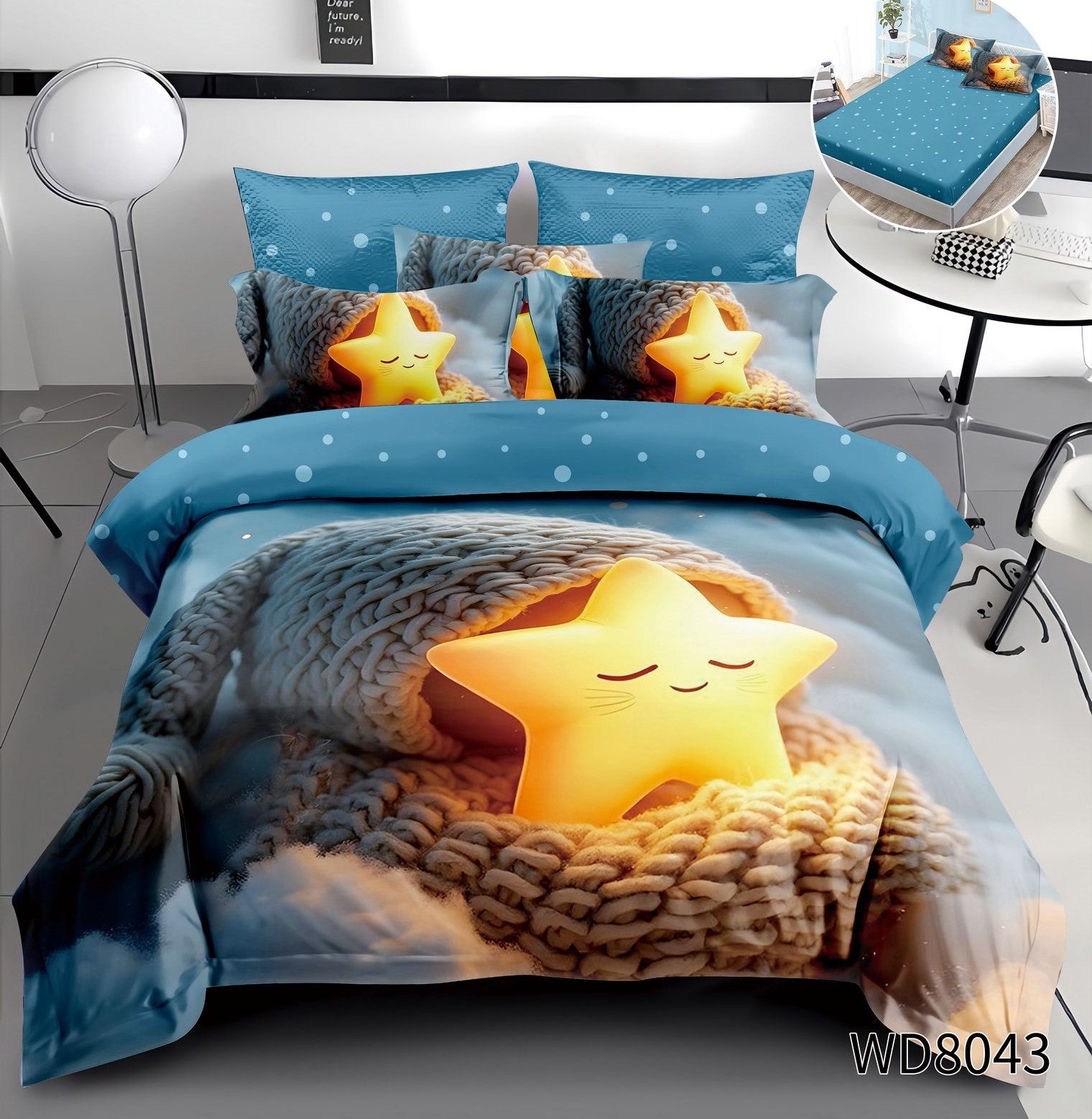 Lenjerie 5D Finet 4 Piese, cu Elastic, Imprimeu Identic cu Poza, Steluta-P10214