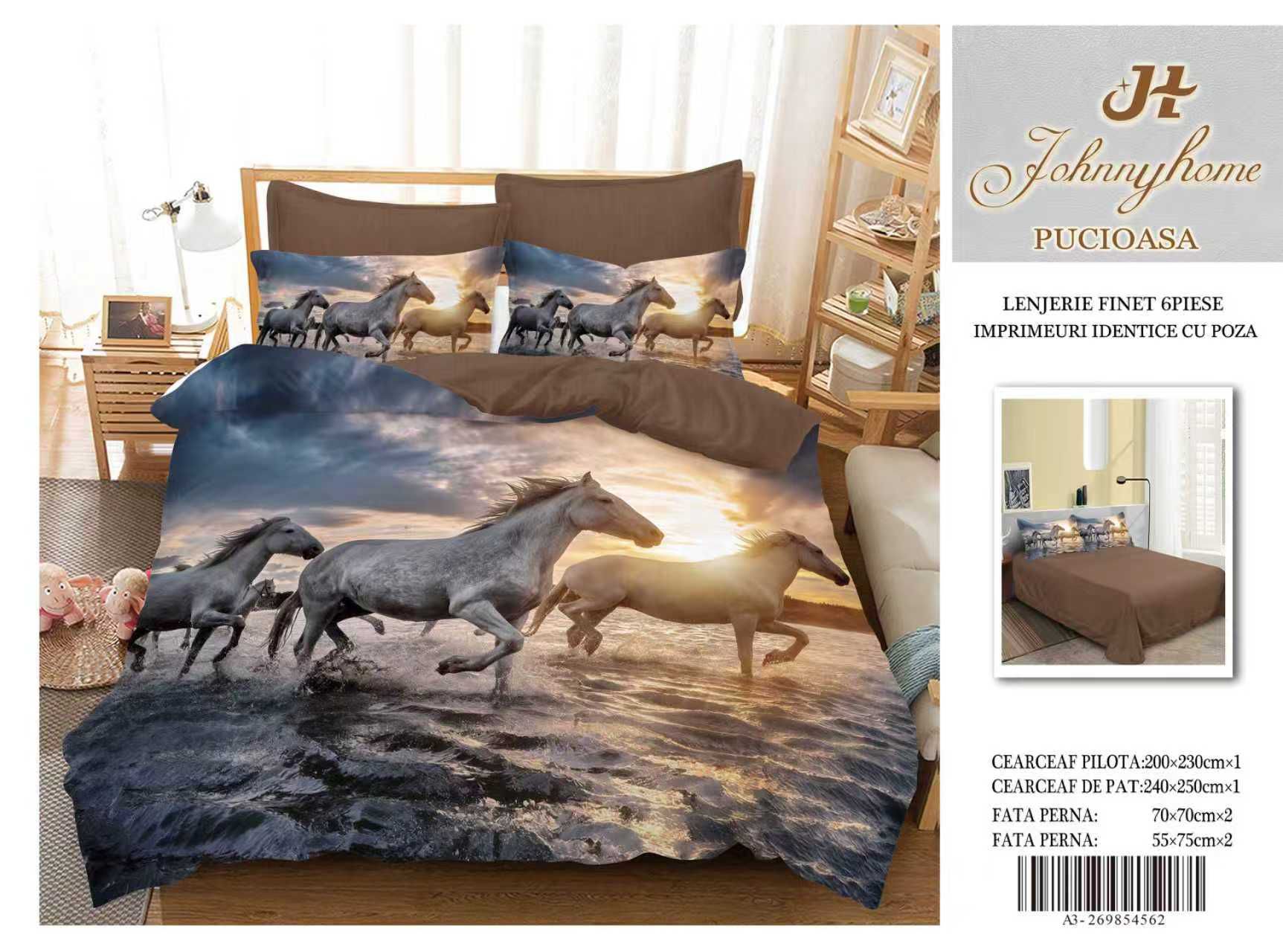 Lenjerie 5D Finet 6 Piese, Imprimeu Identic cu Poza, Cai-H9649