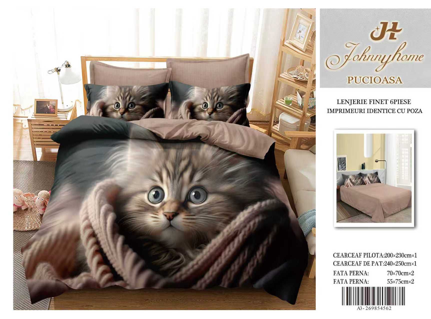 Lenjerie 5D Finet 6 Piese, Imprimeu Identic cu Poza, Pisicuta-H9633