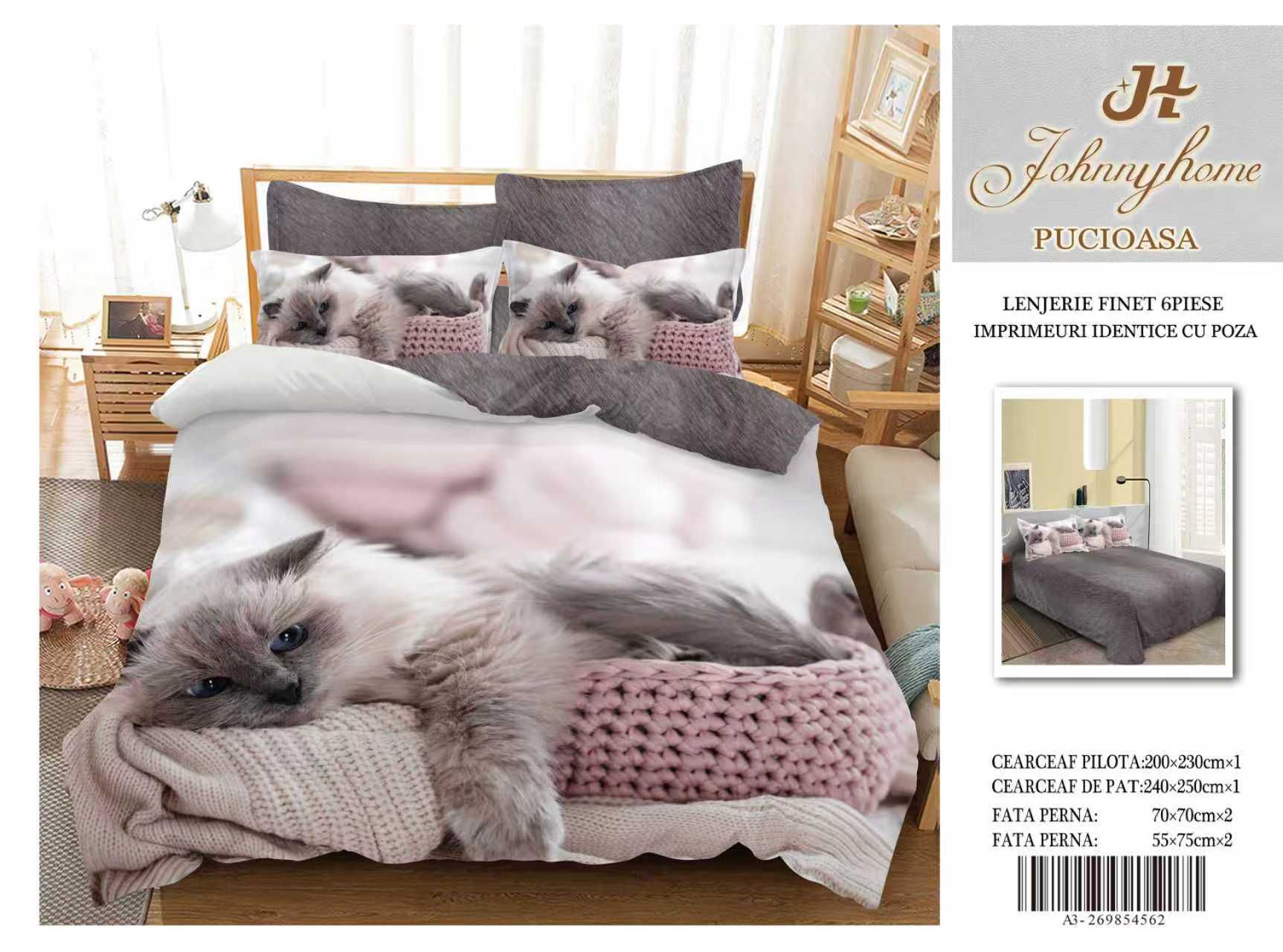Lenjerie 5D Finet 6 Piese, Imprimeu Identic cu Poza, Pisicuta-H9636