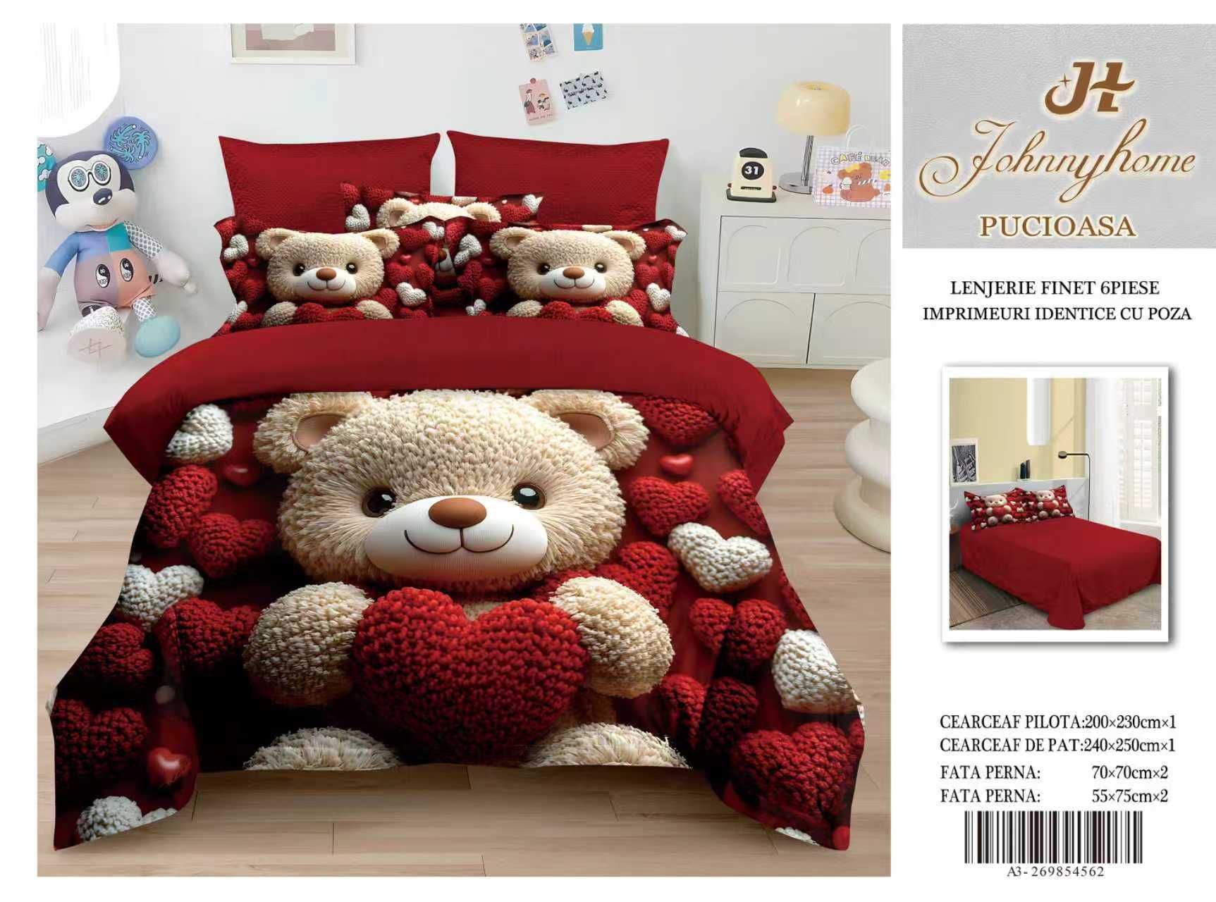 Lenjerie 5D Finet 6 Piese, Imprimeu Identic cu Poza, Ursulet-H9643