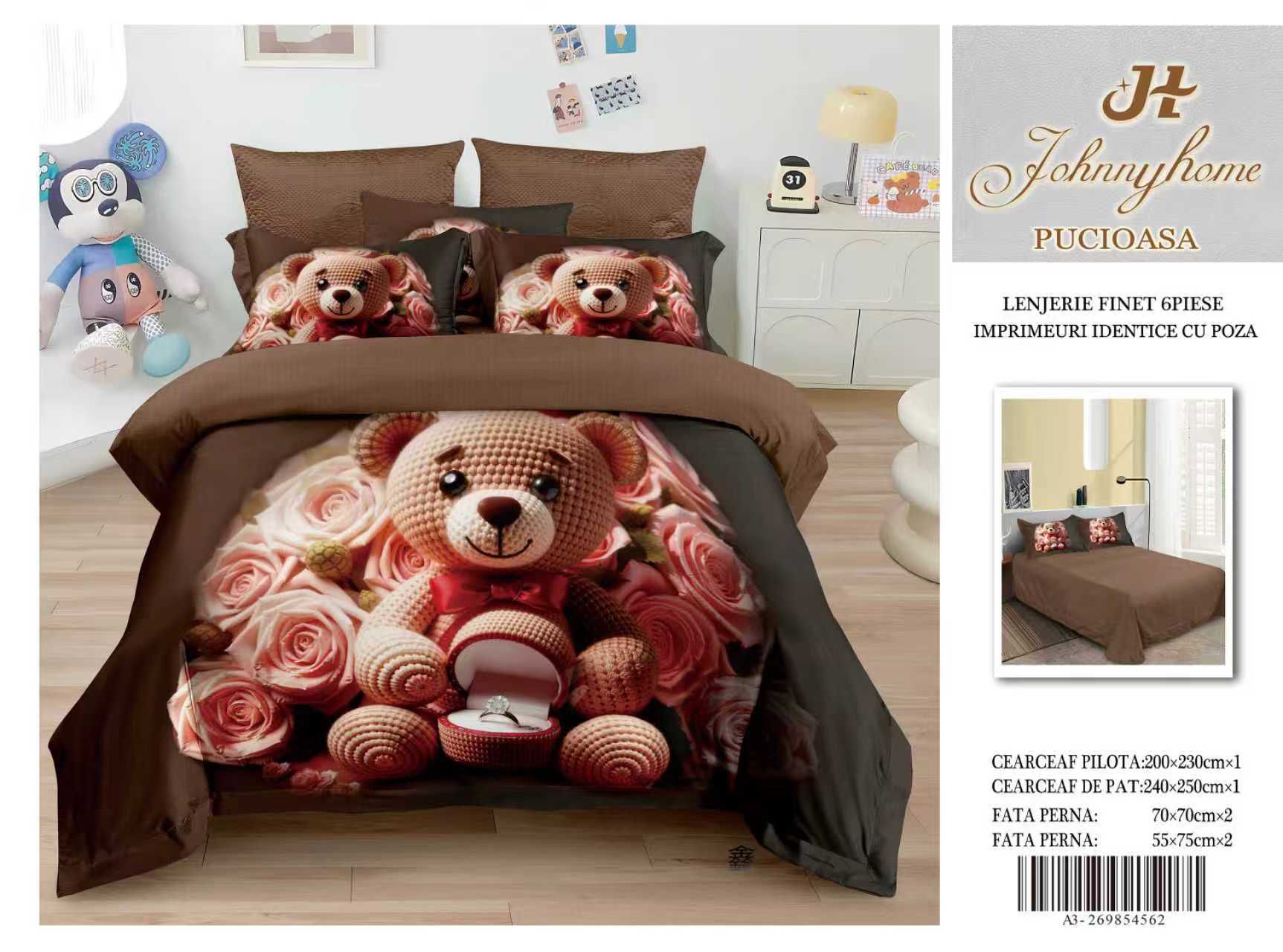 Lenjerie 5D Finet 6 Piese, Imprimeu Identic cu Poza, Ursulet-H9646
