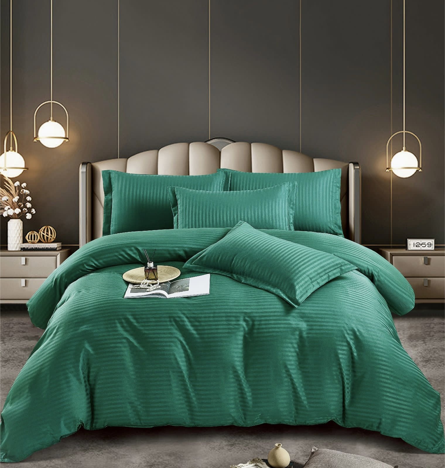 Lenjerie Bumbac Damasc Deluxe, 6 Piese cu Elastic, Verde-C5015