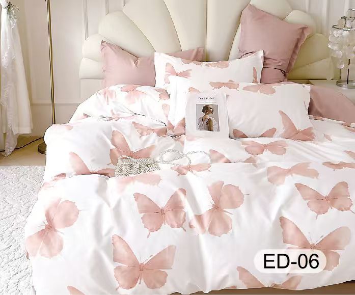 Lenjerie Bumbac Fin Superior, 7 Piese, cu 2 Cearceafuri de Pat, Fluturi-D8114