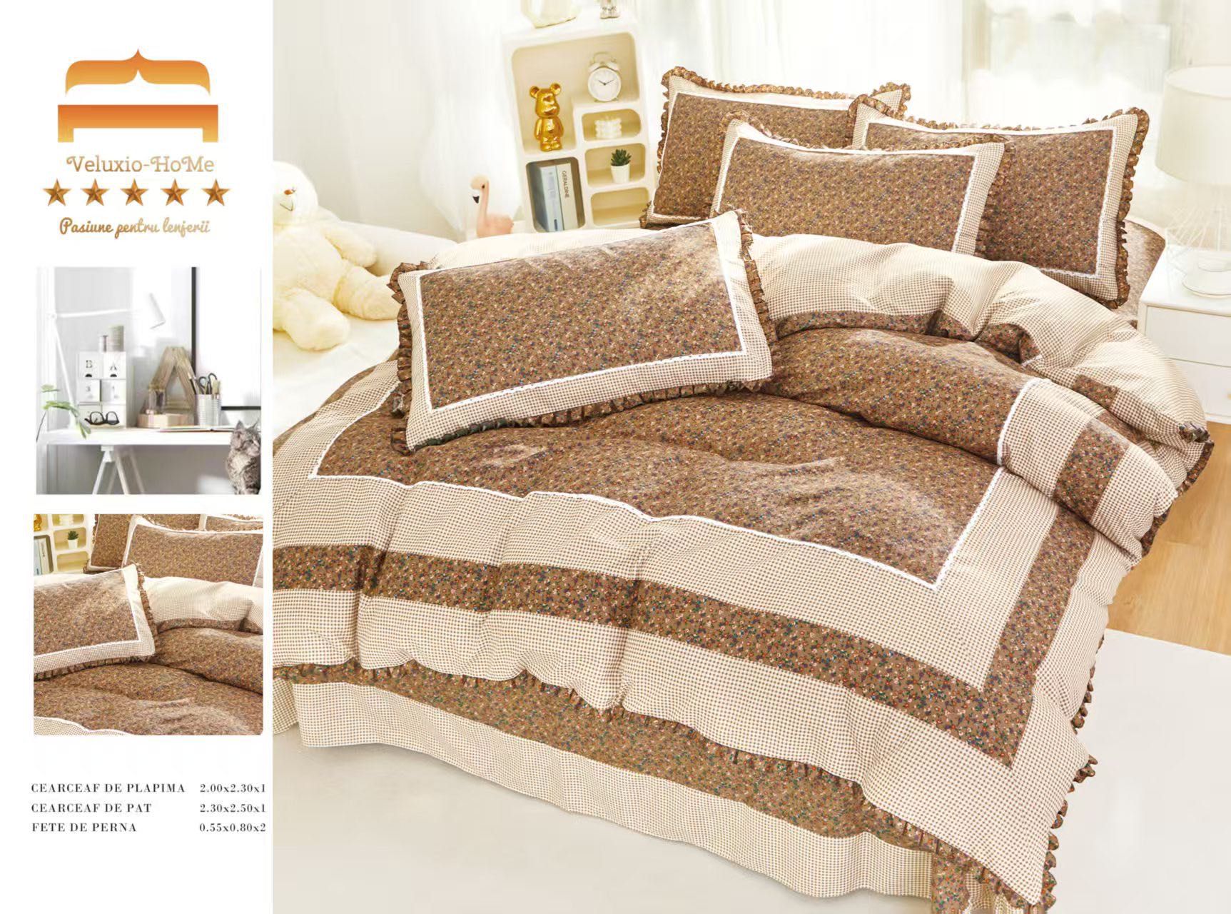 Lenjerie Bumbac Finet Premium 4 Piese cu Volanase, Floricele-M9575