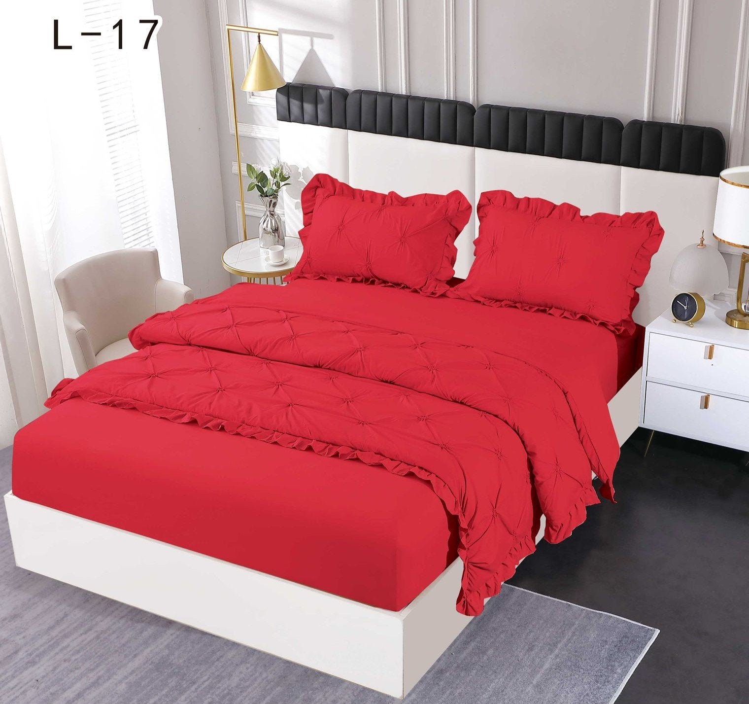 Lenjerie Bumbac Finetat 4 Piese cu Elastic, cu Volanase si Pliuri Brodate, Rosu-SEP6246