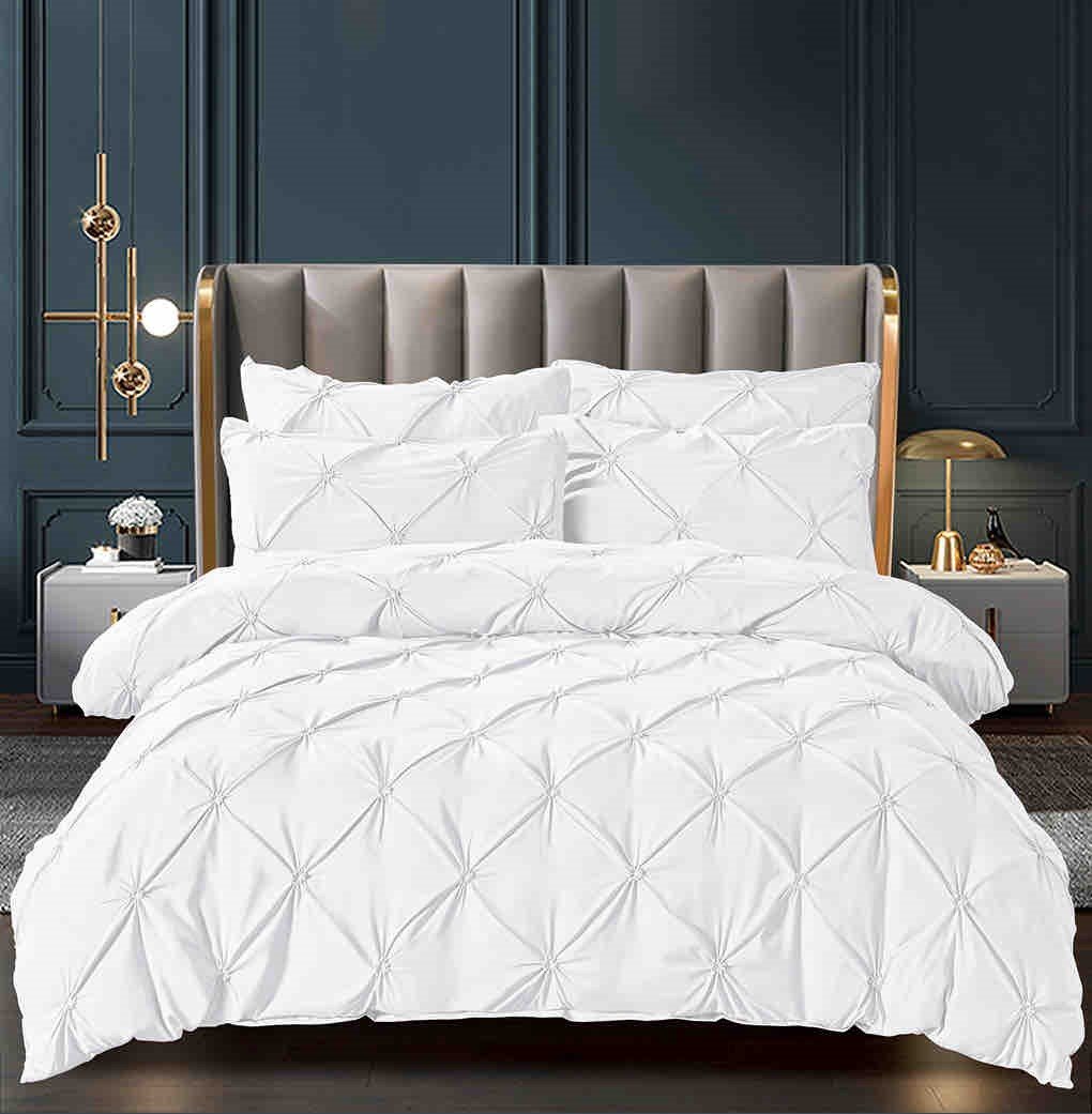 Lenjerie Bumbac Finetat Premium, Soft Touch, 6 Piese, cu Elastic si Pliuri Brodate, Alb-C6177