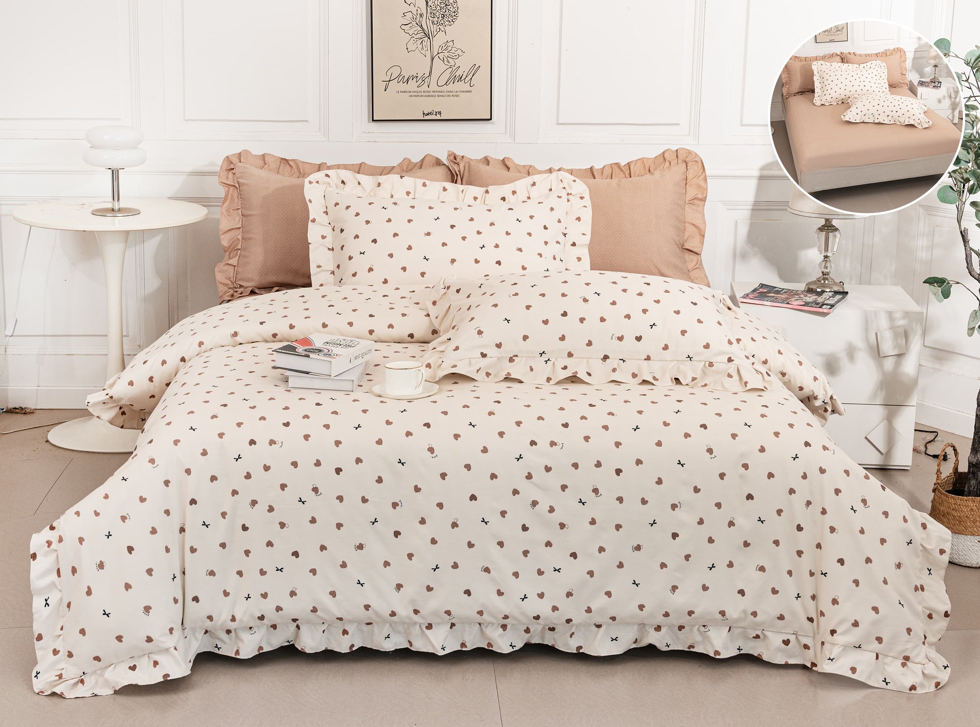Lenjerie Bumbac Tip Finet, 6 Piese, cu Elastic si Volanas, Inimioare-A10332