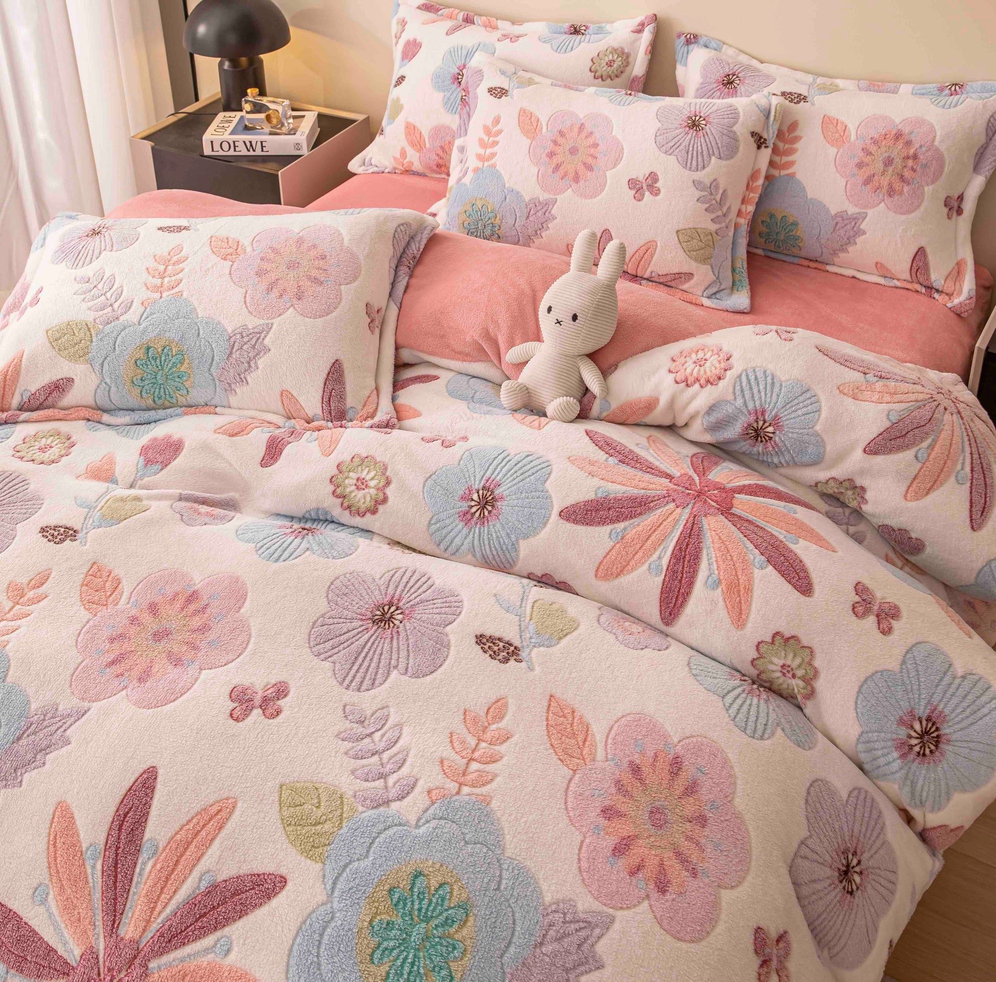 Lenjerie Cocolino 4 Piese cu Elastic, Pat Dublu, Floricele-C9326