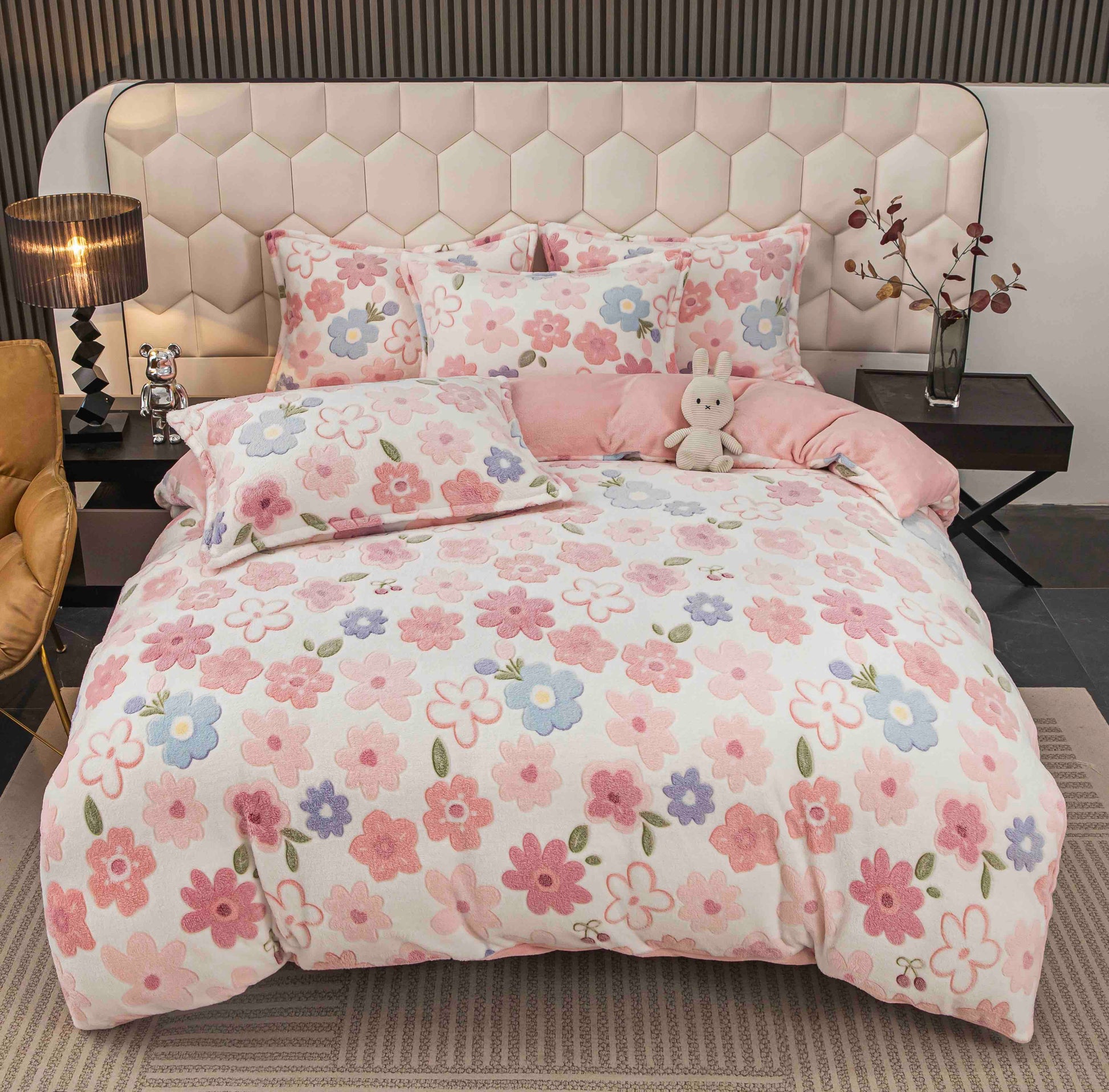 Lenjerie Cocolino 4 Piese cu Elastic, Pat Dublu, Floricele-C9727