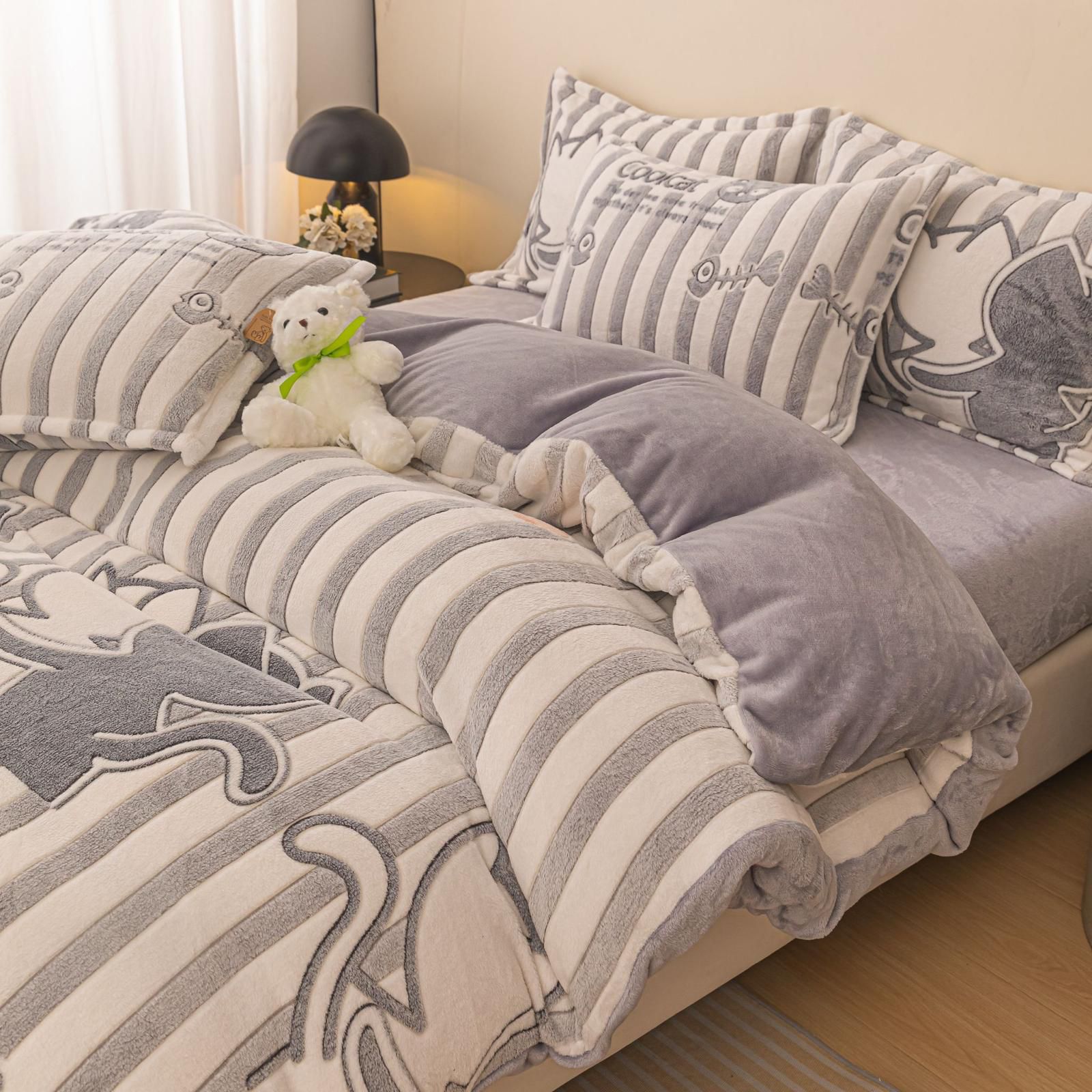 Lenjerie Cocolino 4 Piese cu Elastic, Pat Dublu, Pisicute-C9588