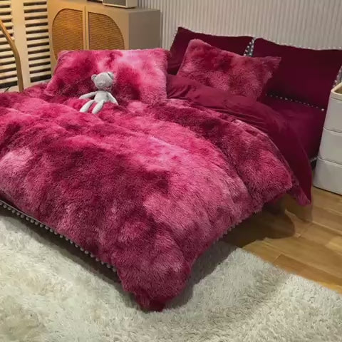 Lenjerie Cocolino Fluffy, Pufoasa, cu Ciucuri, 6 Piese, Burgundy-C4534
