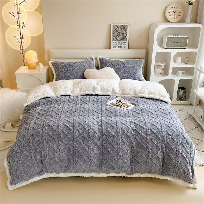 Cearceaful de pilota și fetele de pernă au imprimeu iesit în relief tip tricot.