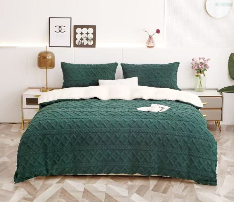 Cearceaful de pilota și fetele de pernă au imprimeu iesit în relief tip tricot.