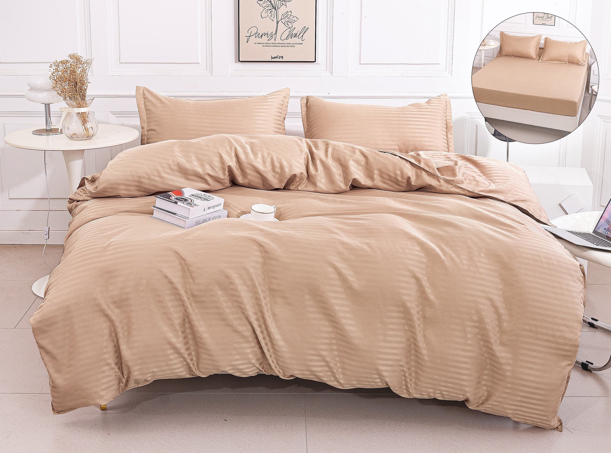 Lenjerie Damasc Finetat 4 Piese cu Elastic, Bej, Uni-A9826