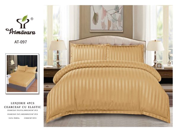 Lenjerie Damasc Finetat 4 Piese cu Elastic, Mustar, Uni-P9605