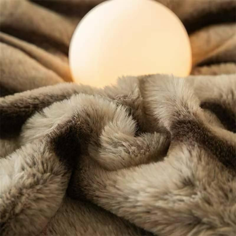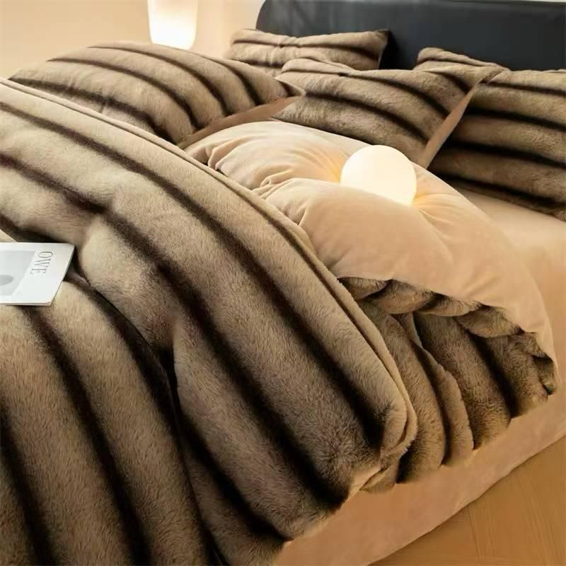 Lenjerie Luxury, Pufoasă, Blănița Tip Chinchila, 4 Piese cu Elastic, Cappuccino Stripe-D10065