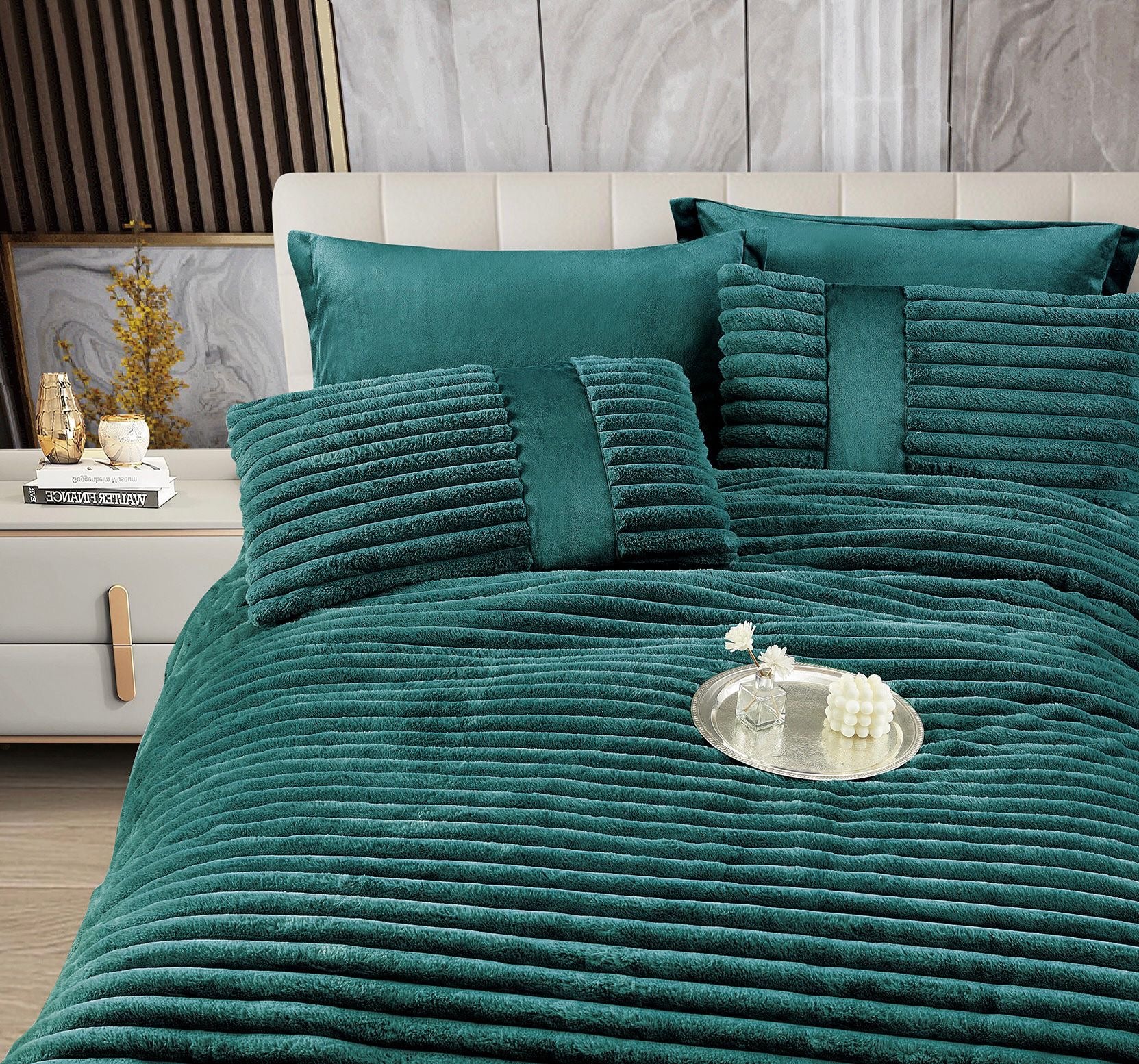 Lenjerie Pat cu Pilota Inclusa, Blanita Iepure Artificiala, Cearceaf de Pat Cu Elastic, 6 Piese, Verde-C9800