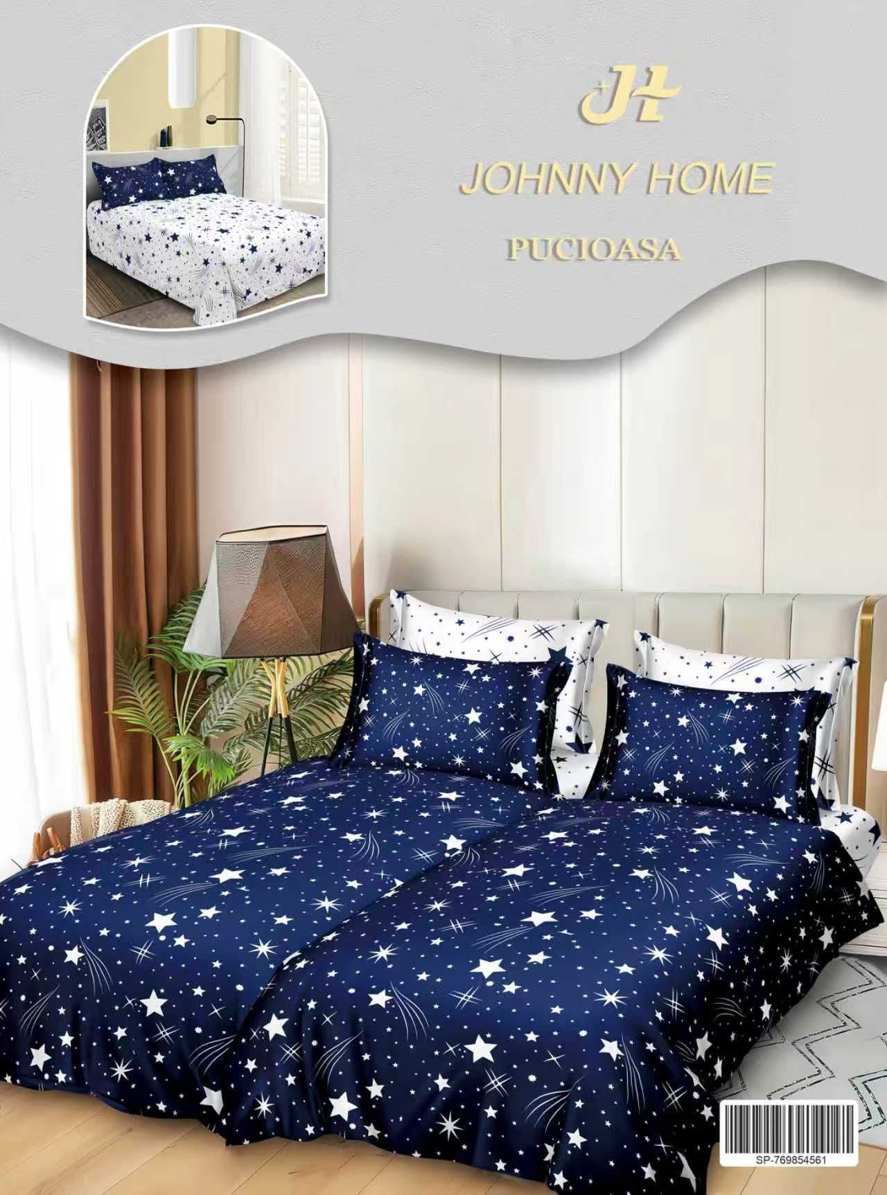 Lenjerie Pat Dublu Bumbac Satinat 7 Piese, cu 2 Cearceafuri de pilota, Stele-H8806