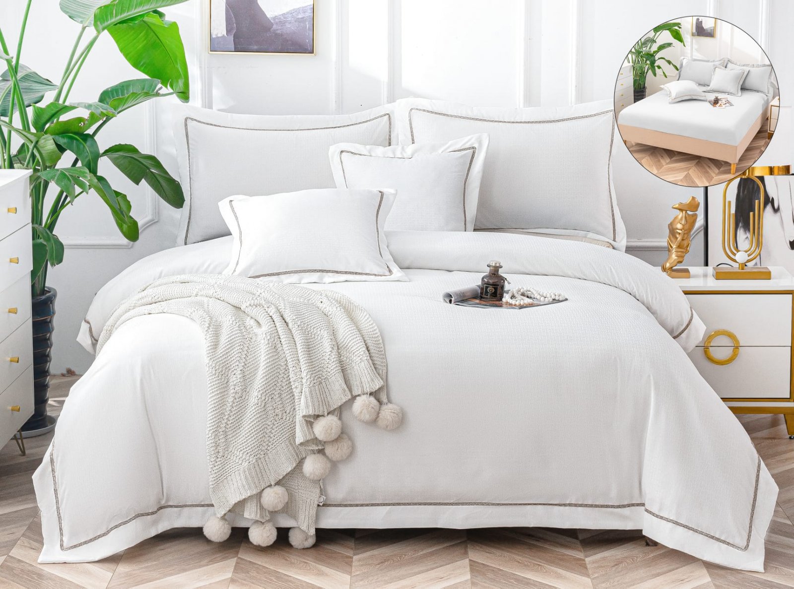 Lenjerie de Pat PREMIUM din Bumbac Neted - Set de 6 piese cu cearceaf de pat cu elastic