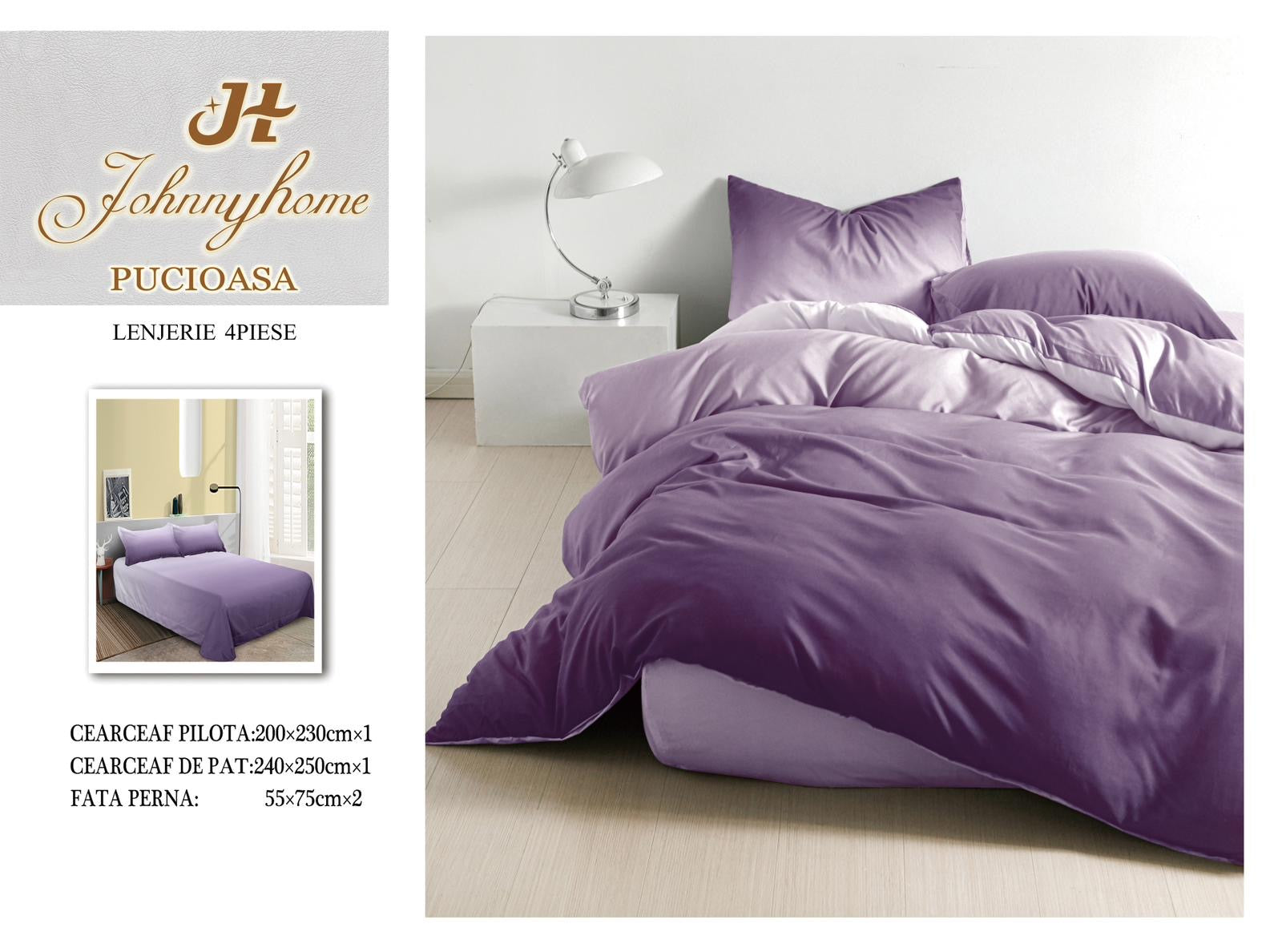 Lenjerie Pat Dublu din Bumbac Satinat Superior cu 4 Piese, Mov Degrade-H8532