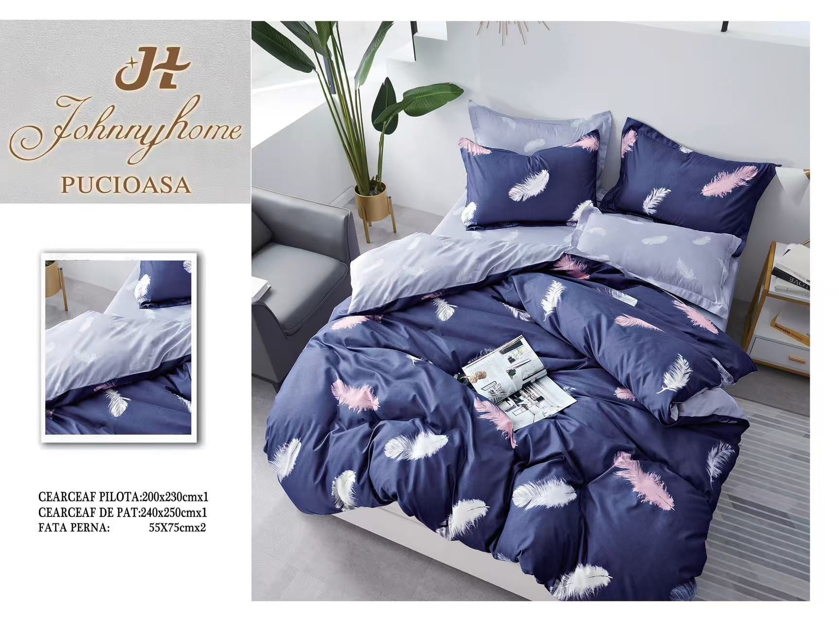 Lenjerie Pat Dublu din Bumbac Satinat Superior cu 4 Piese, Pene-H8539