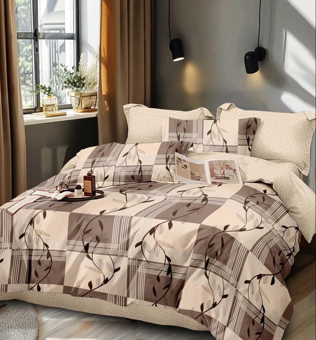 Lenjerie Pat Dublu din Finet, 6 Piese, Bej/Frunze-D9889