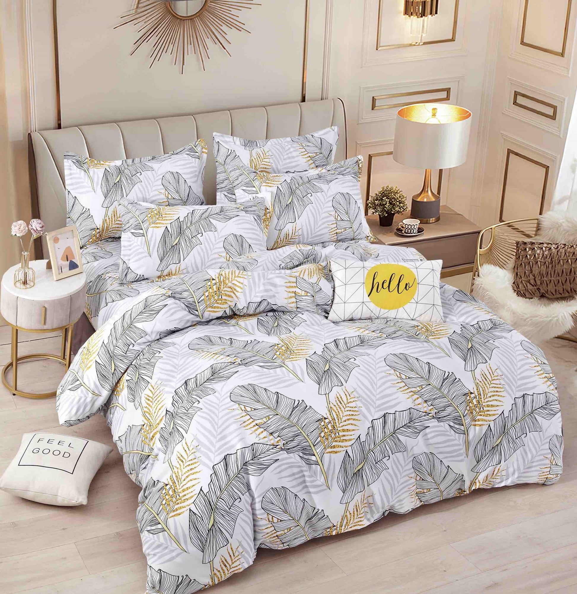 Lenjerie Pat Dublu din Finet, 6 Piese, cu Elastic, Frunze-C8706