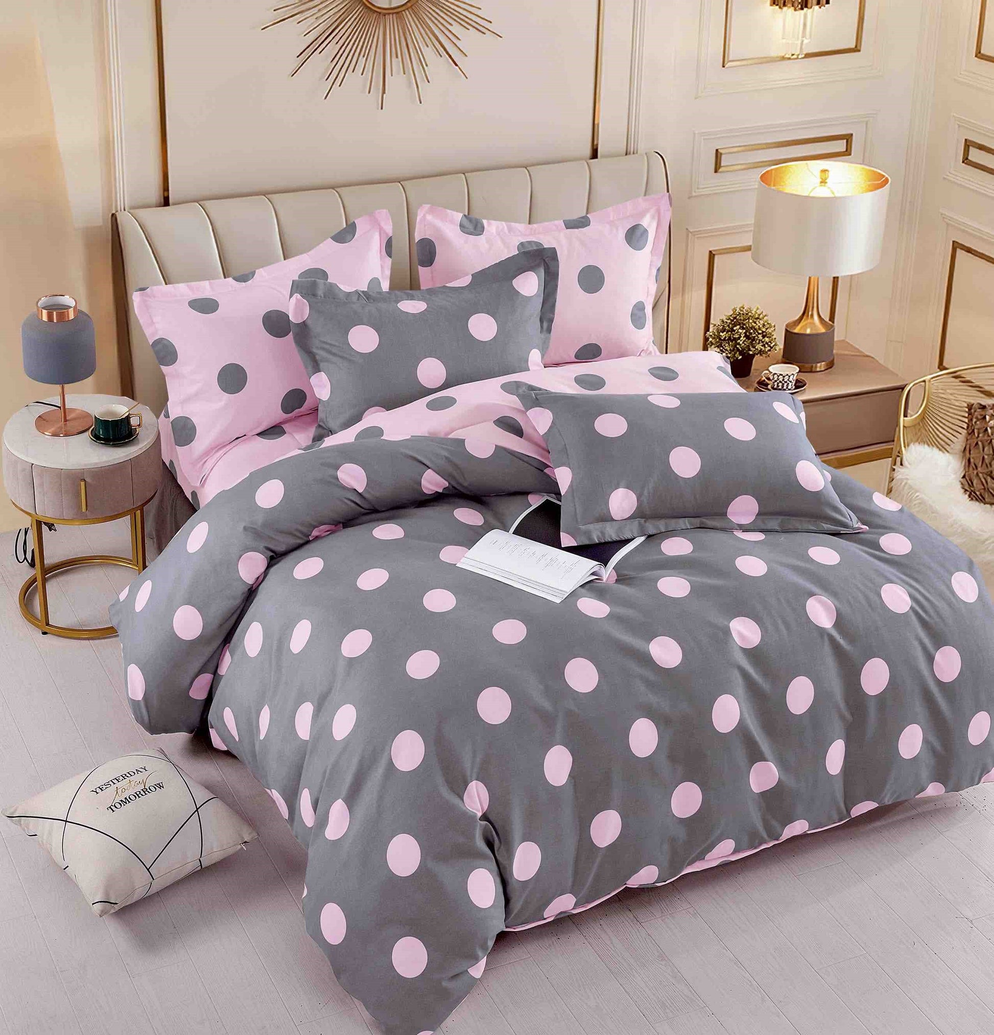 Lenjerie Pat Dublu din Finet, 6 Piese, cu Elastic, Gri/Buline-C8707